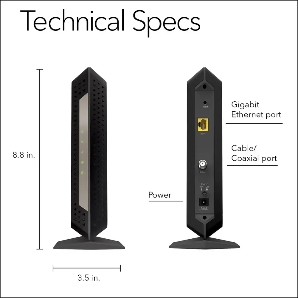 - Cable Modem Only – Requires a separate WiFi router for wireless connectivity. Recommended pairing with a NETGEAR WiFi router.