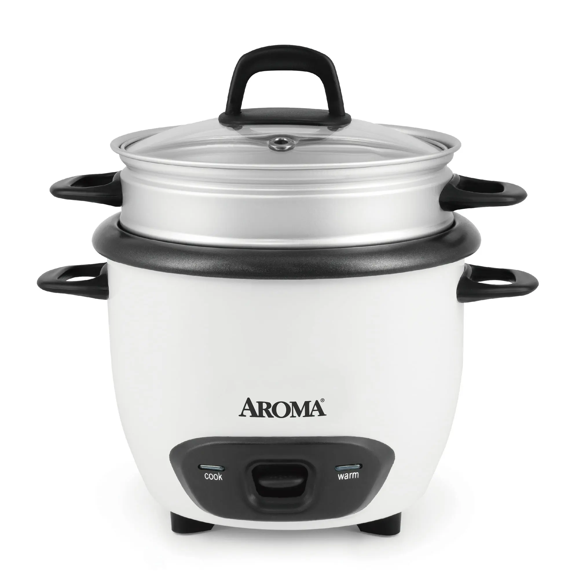 The Aroma 6-Cup (Cooked) Pot Style Rice Cooker and Food Steamer makes home cooking easy and enjoyable. With this versatile appliance, you can prepare restaurant-quality rice, healthy steamed meals, and delicious one-pot dishes with just the flip of a switch. Aroma takes the hassle out of cooking, letting you spend more time doing what you love while still serving hot, hearty meals for the whole family. Its compact design perfectly cooks 2 to 6 cups of rice, automatically switching to Keep-Warm once the rice is done, so there's no need to monitor. The included Steam Tray allows for steaming meats and vegetables while rice cooks below, making it ideal for oatmeal, soups, chili, jambalaya, and more. Cleanup is a breeze, as the inner cooking pot and accessories are dishwasher-safe.