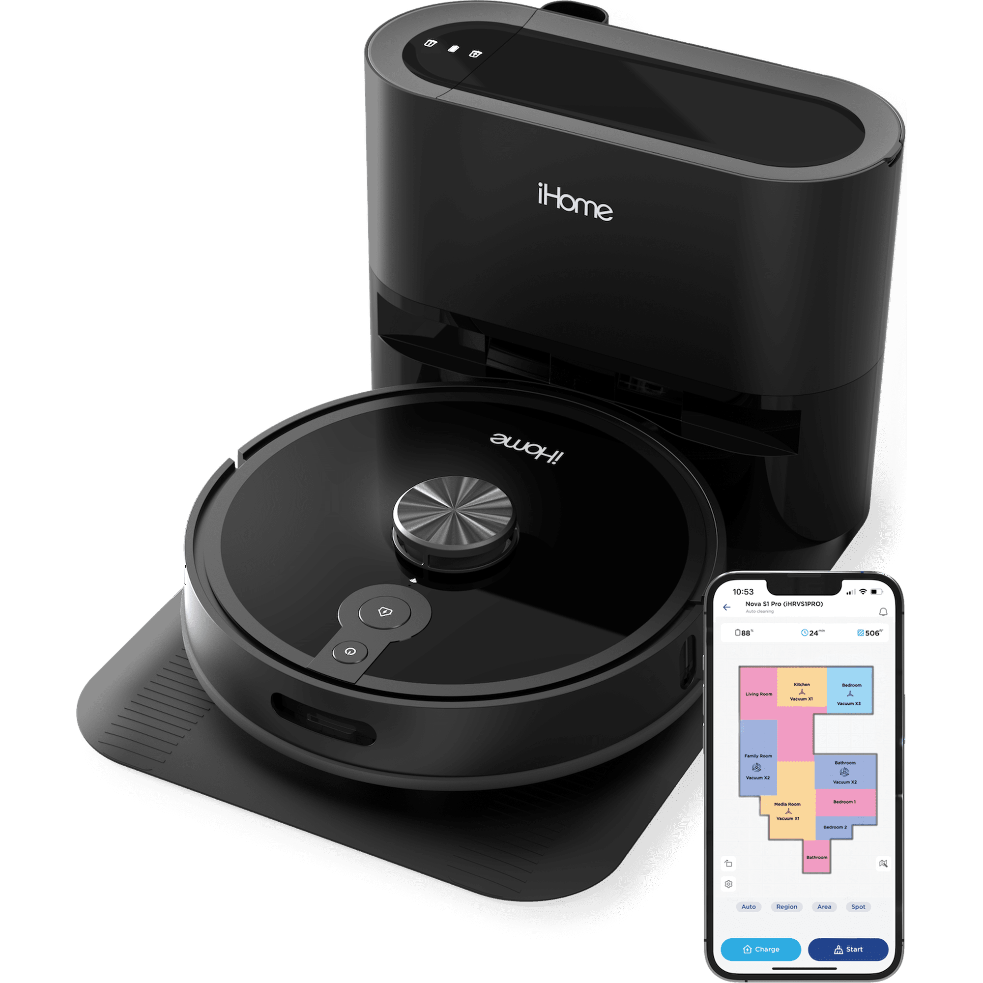 Say goodbye to cleaning hassles with the iHome AutoVac Nova Pro. Equipped with advanced HomeMap 2.0 Navigation and 360 LIDAR Technology, it customizes cleaning to fit your home's layout. The iHome Clean App allows you to visualize and personalize cleaning routines by setting virtual boundaries and specifying room tasks. The Nova Pro features an Auto Empty Base that can store debris for weeks, eliminating the need for frequent manual emptying. It autonomously docks, charges, and empties its bin, ensuring your home stays perpetually clean with minimal effort.