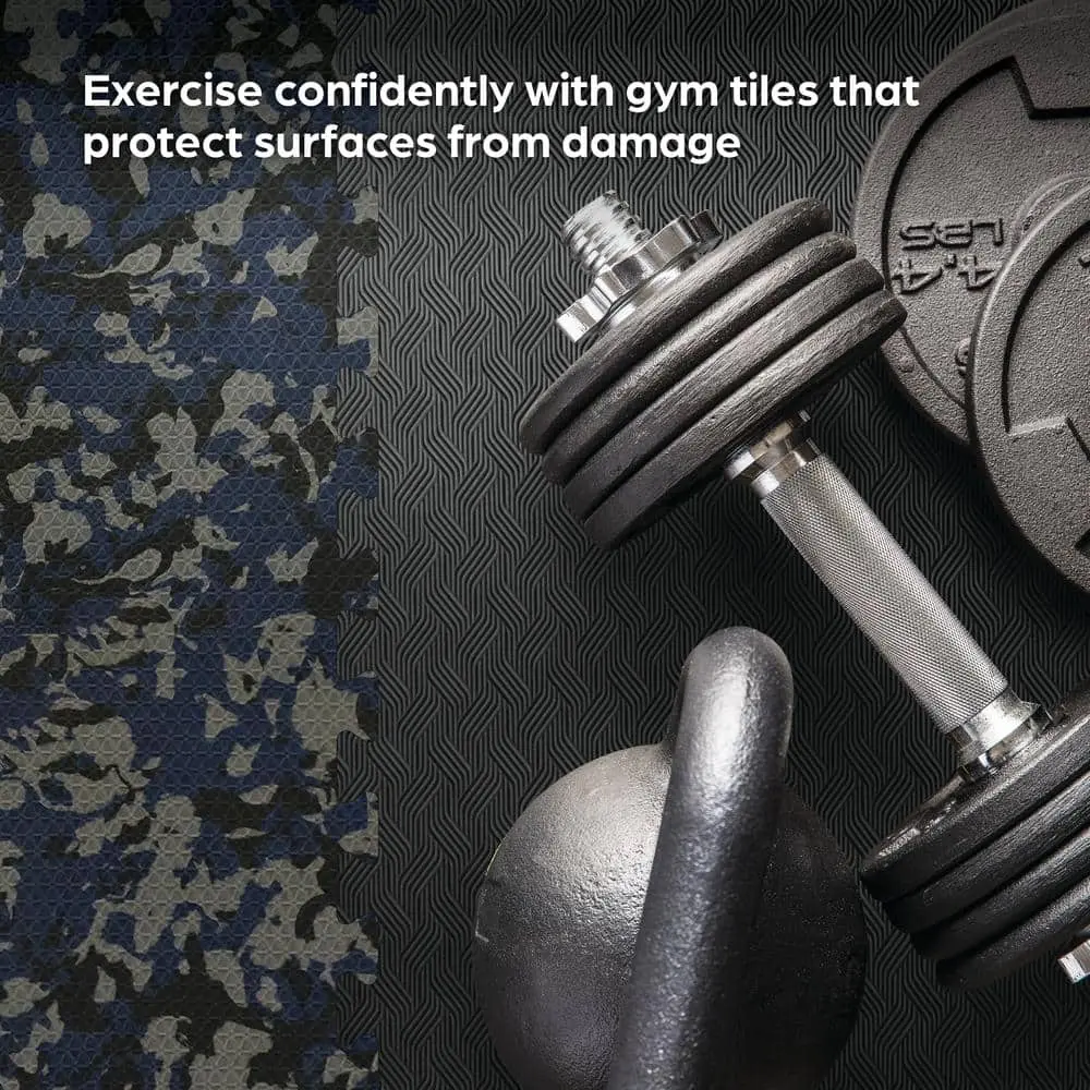 Elevate your workout space with the Norsk Blue Camo Dual-Sided Impact Foam Gym Tile, designed for comfort, protection, and style. Featuring a dual-sided design, these tiles offer extended durability and versatility for long-lasting performance. Made from impact-absorbing foam, they provide superior cushioning and joint support, reducing strain during high-intensity workouts. Each pack includes four 25" x 25" tiles, covering 17.35 sq. ft., with a 0.55-inch thickness for enhanced support. The non-slip surface ensures stability and safety, while the bold blue camo pattern adds a unique and stylish touch to any gym setup. With an easy interlocking system, these tiles allow for quick and secure installation, making them a hassle-free addition to your fitness space.