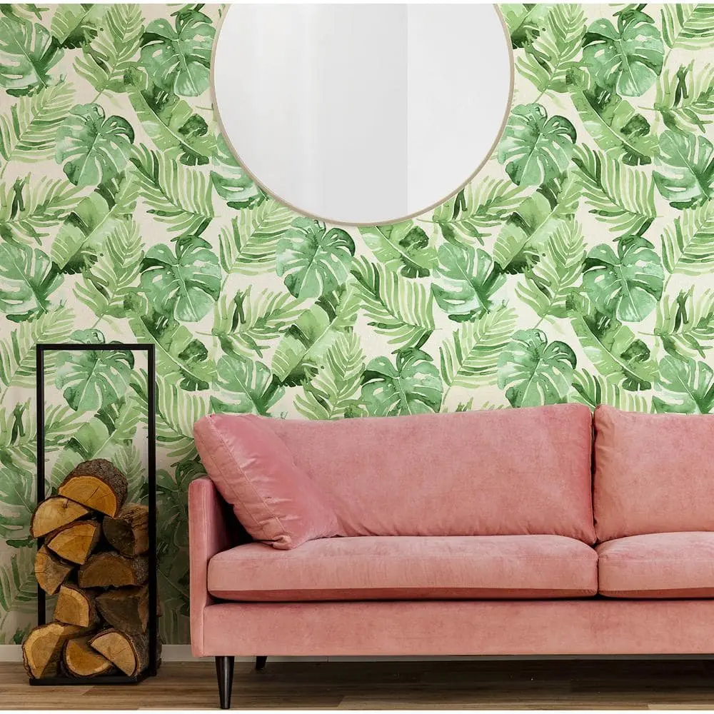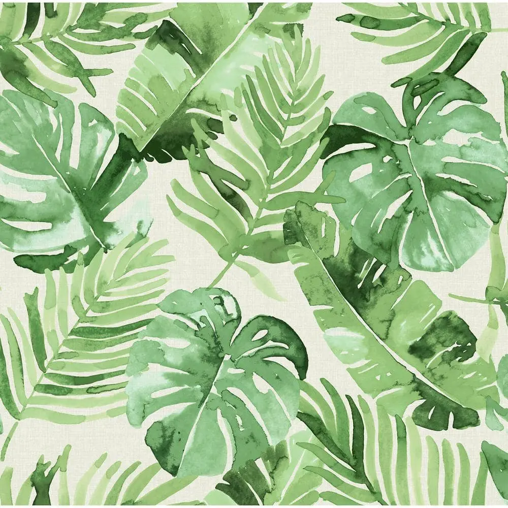 Transform your room with a fresh look featuring this green botanical design. The vibrant pattern stands out against a clean white backdrop, enhancing its tropical vibe. Tortola Peel and Stick Wallpaper is available in a single roll measuring 20.5 inches in width and 18 feet in length.