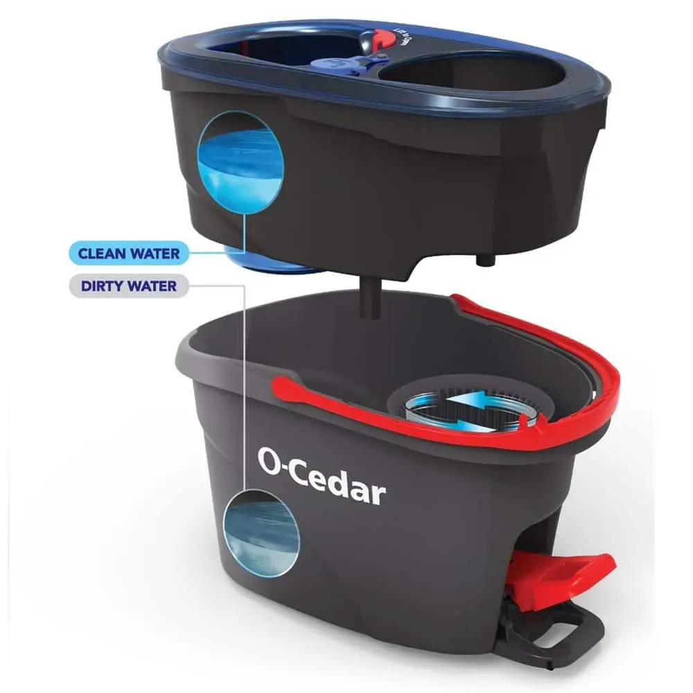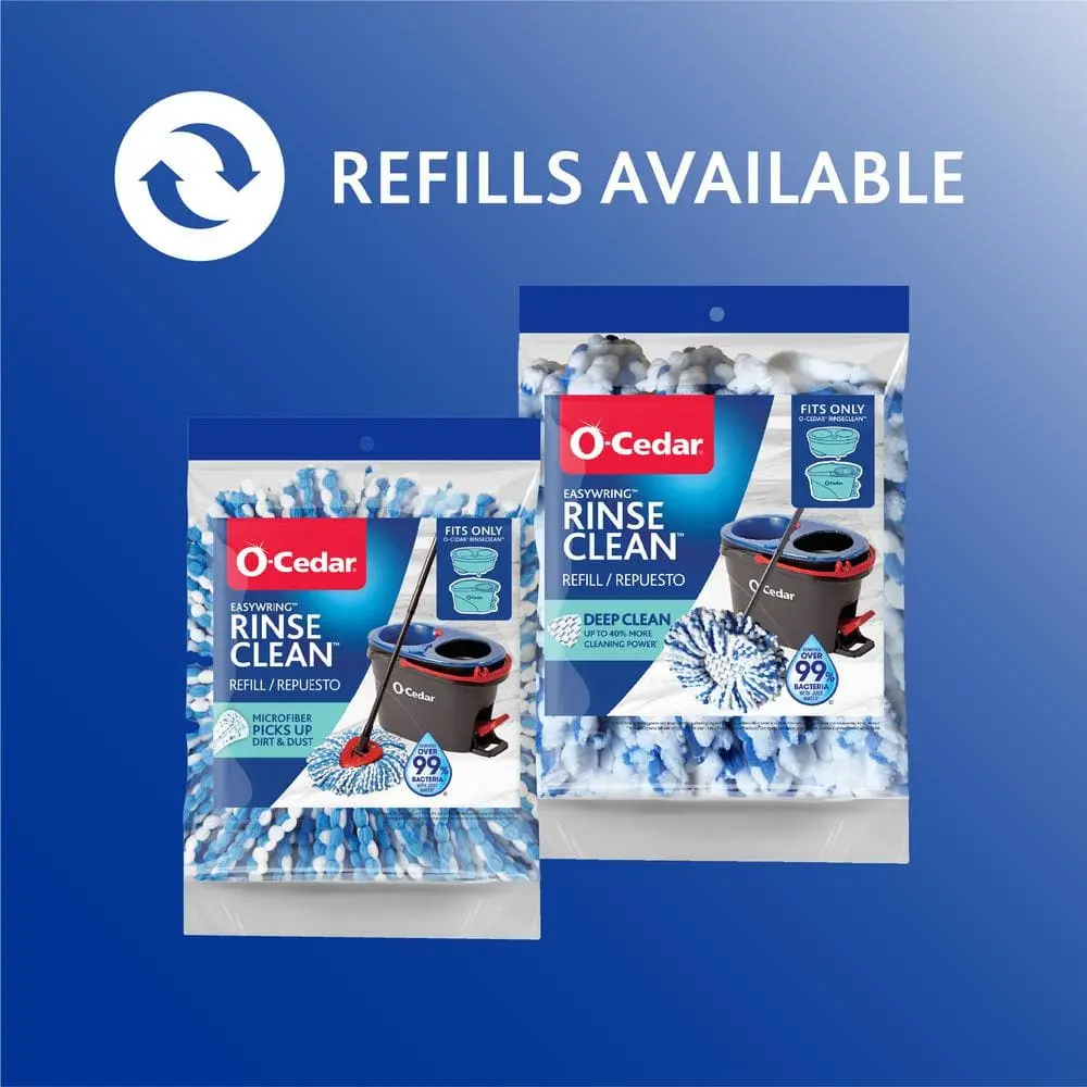 Achieve spotless floors with the O-Cedar RinseClean Deep Clean Spin Mop and Bucket System, equipped with the innovative RinseClean technology and a special Deep Clean refill designed for tough spills. This two-bucket mopping system is the only one that separates clean and dirty water, ensuring you always mop with fresh water. The Deep Clean refill features a unique scrubbing pad that provides up to 40% more cleaning power, making it perfect for tackling stubborn stains. Like all O-Cedar refills, it removes over 99% of bacteria with just water and is both washable and reusable.