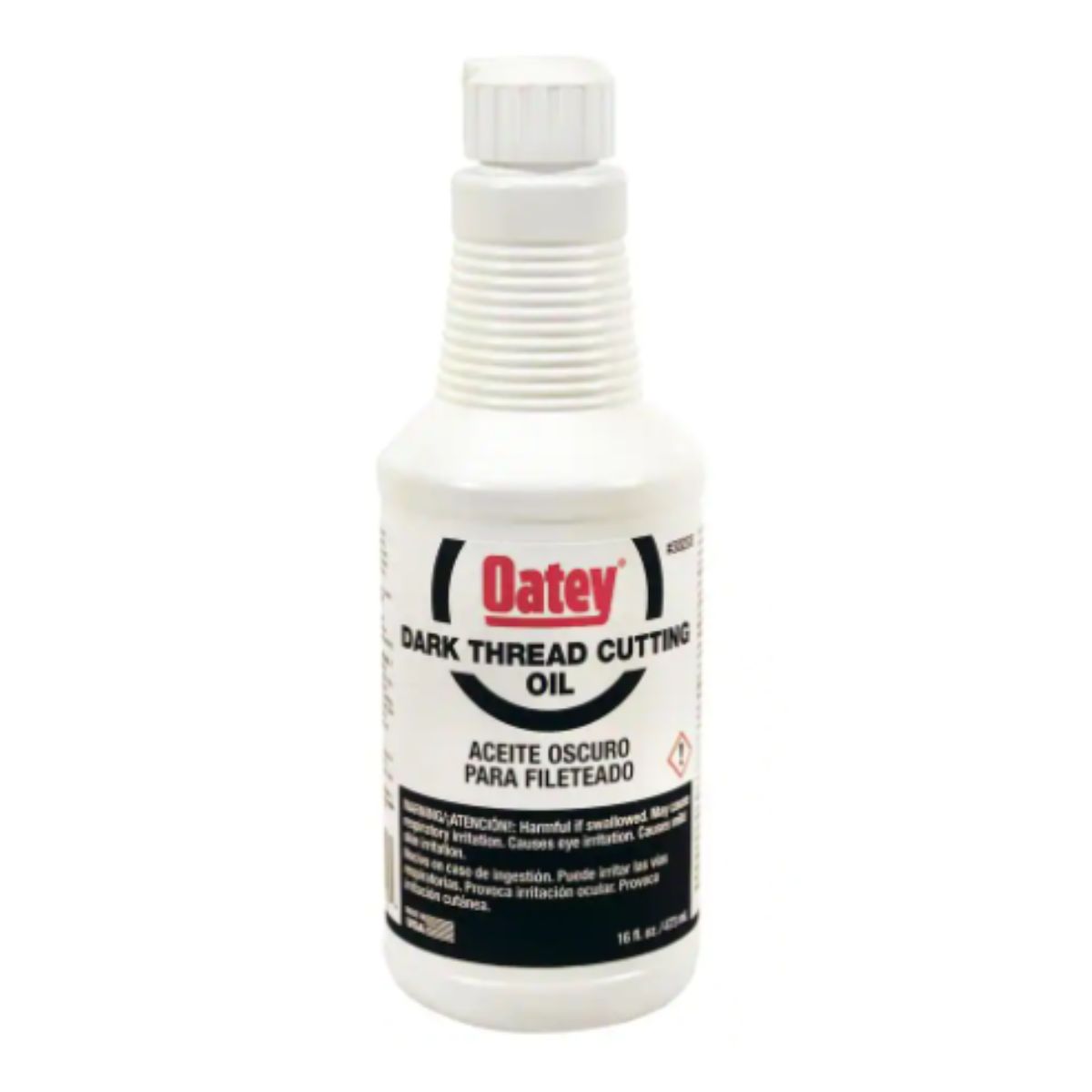 Oatey Dark Thread Cutting Oil is specifically formulated for high-RPM thread cutting machines to wet, lubricate, and cool dies during the threading process. It is designed for use with steel and brass pipes, enhancing lubrication to ensure sharp and clean threads. The oil's unique blend of sulfonated and chlorinated oils offers high film strength, keeping machines running cooler and extending the life of dies. Oatey, known for its reliability in plumbing products for over a century, ensures this cutting oil meets the demanding needs of professional plumbing operations.