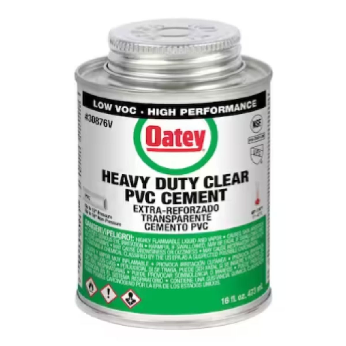 OATEY PVC Heavy-Duty Medium Set Clear Cement is a versatile solvent cement ideal for a wide range of applications including DWV, pressure pipe, potable water, and electrical installations. Its thick formula effectively fills gaps in large diameter pipe and loose-fitting joints, ensuring a strong and reliable bond. This clear cement can be used to solvent weld all schedules and classes of PVC pipe and fittings, accommodating interference fits up to 18 inches in diameter for non-pressure applications and up to 12 inches for pressure pipes. The included in-lid dauber facilitates easy application. It operates optimally within a recommended temperature range of 40°F to 110°F (4°C to 43°C) and meets rigorous environmental standards, including UL GREENGUARD Gold certification for low VOC emissions. Additionally, it complies with ASTM Standard D2564 and NSF/ANSI 61 health effects requirements, ensuring safety and performance in plumbing and construction projects.