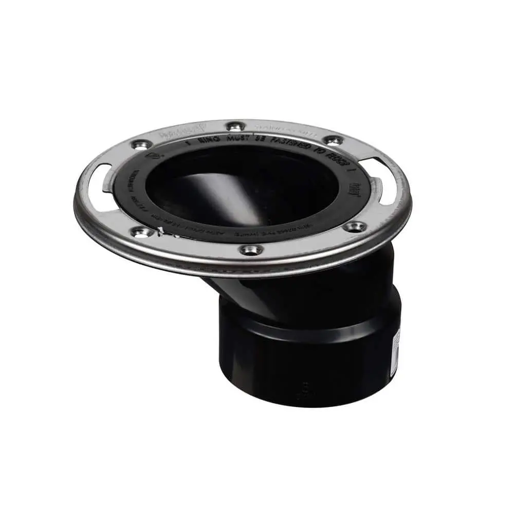 The Oatey Level Fit Offset Closet Flange is designed for durability with a stainless steel ring that enhances strength and crack resistance. The 360° swivel feature of the metal ring provides flexibility for precise alignment of bolts and screws, allowing for better adjustment and fit. Trusted by plumbing professionals for over 100 years, Oatey products ensure reliable performance.