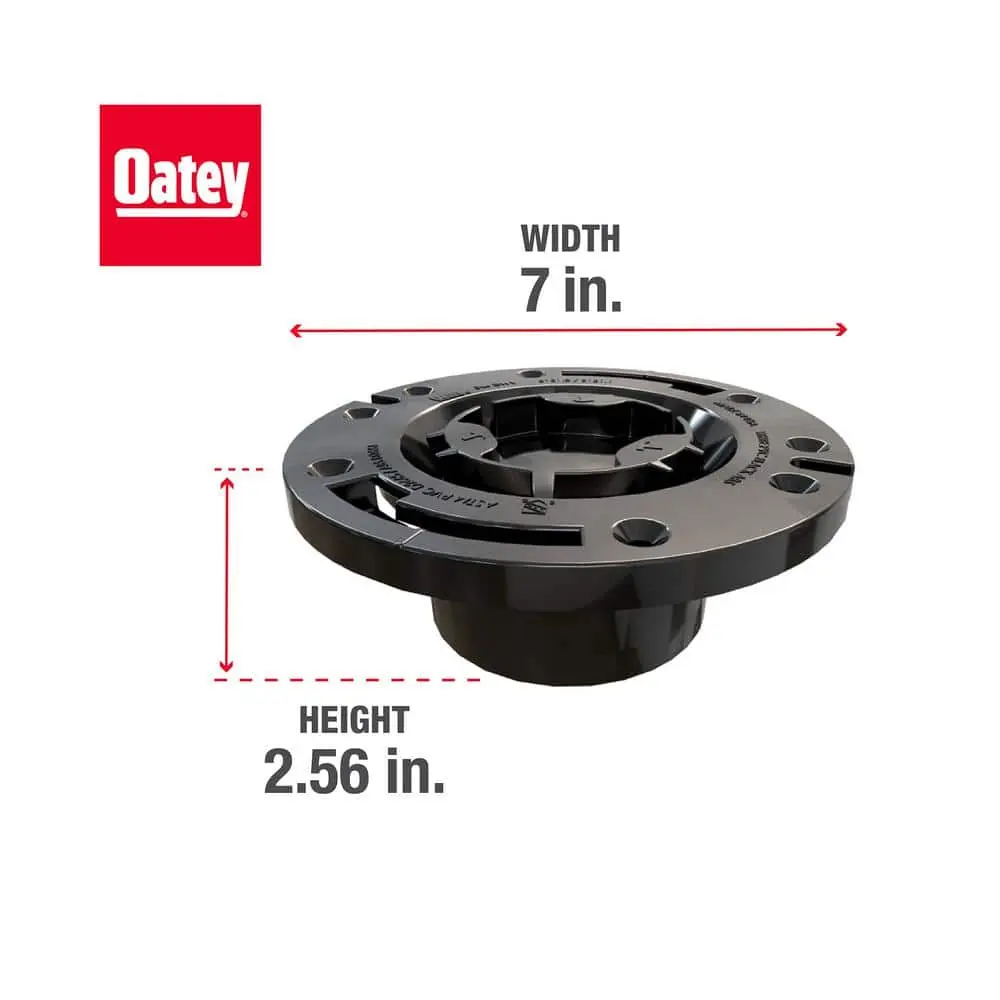 The Oatey Fast Set Closet Flange is available in various materials and styles, featuring a test cap that easily breaks out, preventing it from falling down the DWV line. This test cap withstands up to 30 feet of head pressure, ensuring durability. Trusted by plumbing professionals for over 100 years, Oatey products offer reliable performance.