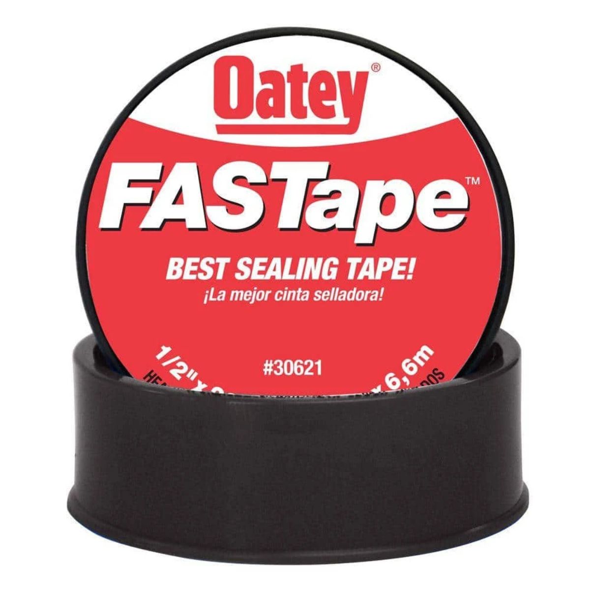 Oatey FasTape is a professional-grade PTFE thread-sealing tape suitable for a wide range of threaded pipes, including stainless steel, cast iron, PVC, CPVC, ABS, brass, and chrome fittings, as well as gas connections. Trusted by plumbing professionals for over 100 years, Oatey products are known for their reliability and performance. FasTape requires fewer wraps and resists tearing and ripping, offering improved aesthetics especially with chrome or stainless steel. It is cUL-listed for strenuous applications, chemically inert, and contains a high density of PTFE at 3.5 mils thick, ensuring secure sealing of threads across various piping systems.
