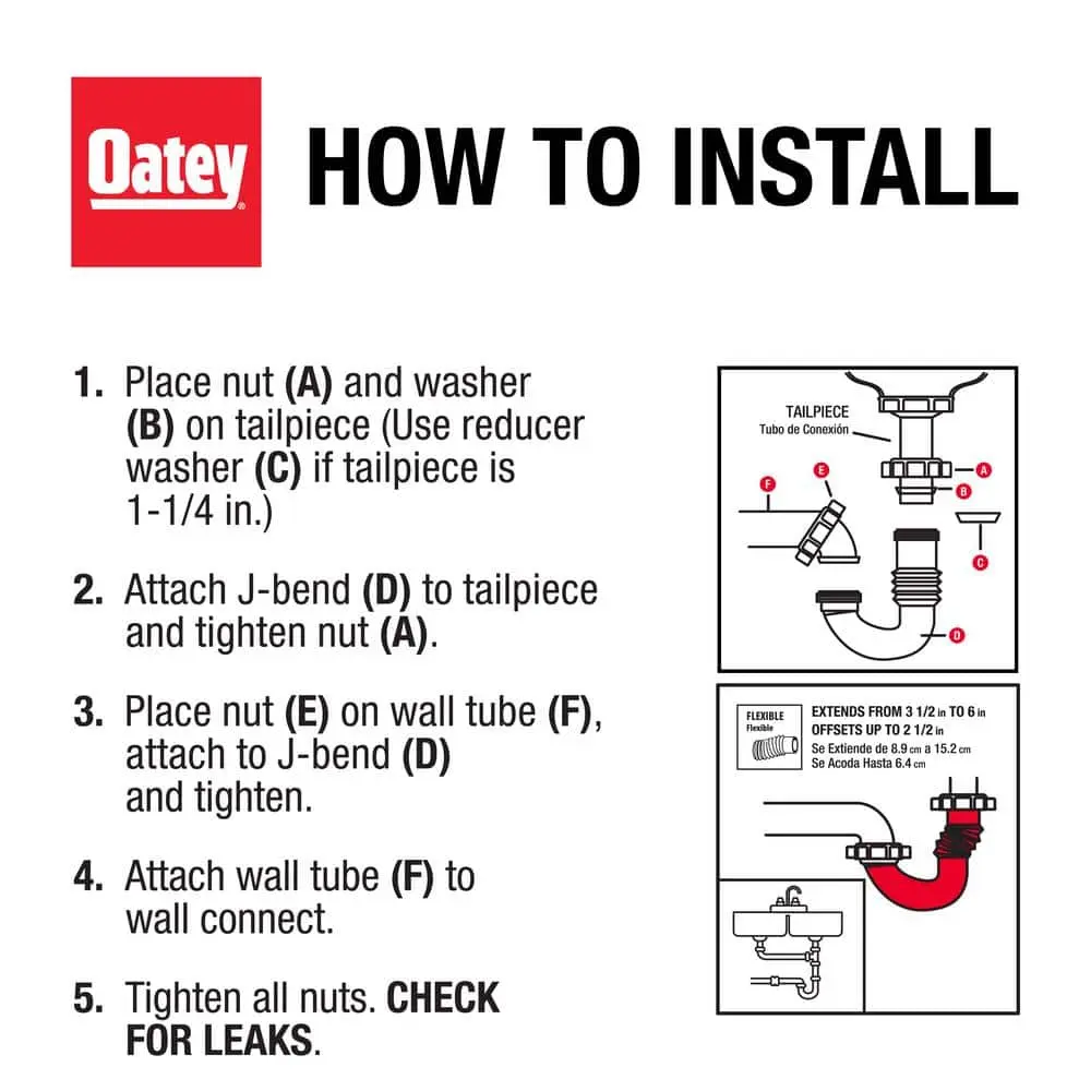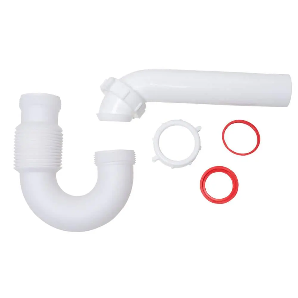 Keep your kitchen sink functioning properly with the Form N Fit 1-1/2 in. Flexible P-Trap. Designed for easy connection to pipes ranging from 1-1/4 in. to 1-1/2 in., its flexible accordion-style design allows it to bend, compress, and extend up to 6 inches. Constructed from durable polypropylene, this P-trap offers long-lasting performance. The kit includes a slip joint nut, washers, and everything needed for simple installation. For over 100 years, Oatey has been trusted by plumbing professionals for reliable products.
