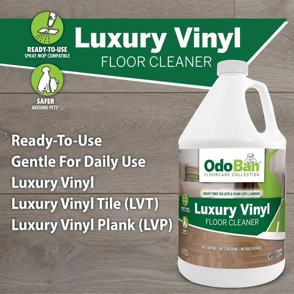 The OdoBan 1 Gal. Luxury Vinyl Floor Cleaner is a ready-to-use solution designed specifically for vinyl floors. Its ready-to-use formula eliminates the need for mixing, making it convenient for immediate application. This cleaner ensures a streak-free finish, leaving your floors spotless without residue. It also features a pleasant fragrance, providing a fresh, clean scent after every use. With a generous 1 Gal. size, it’s perfect for larger cleaning tasks, making it an excellent choice for both home and commercial use