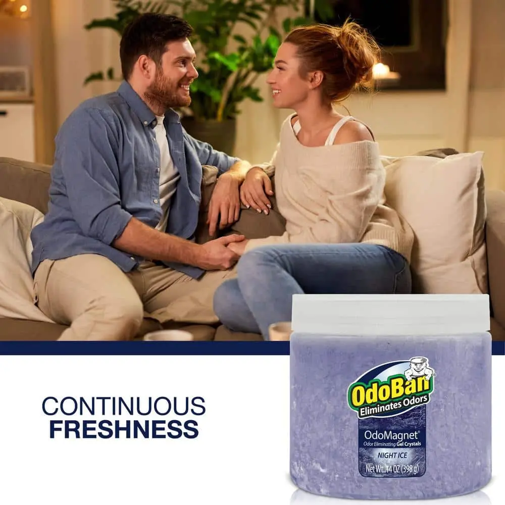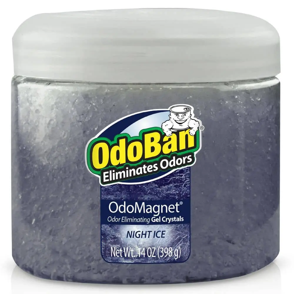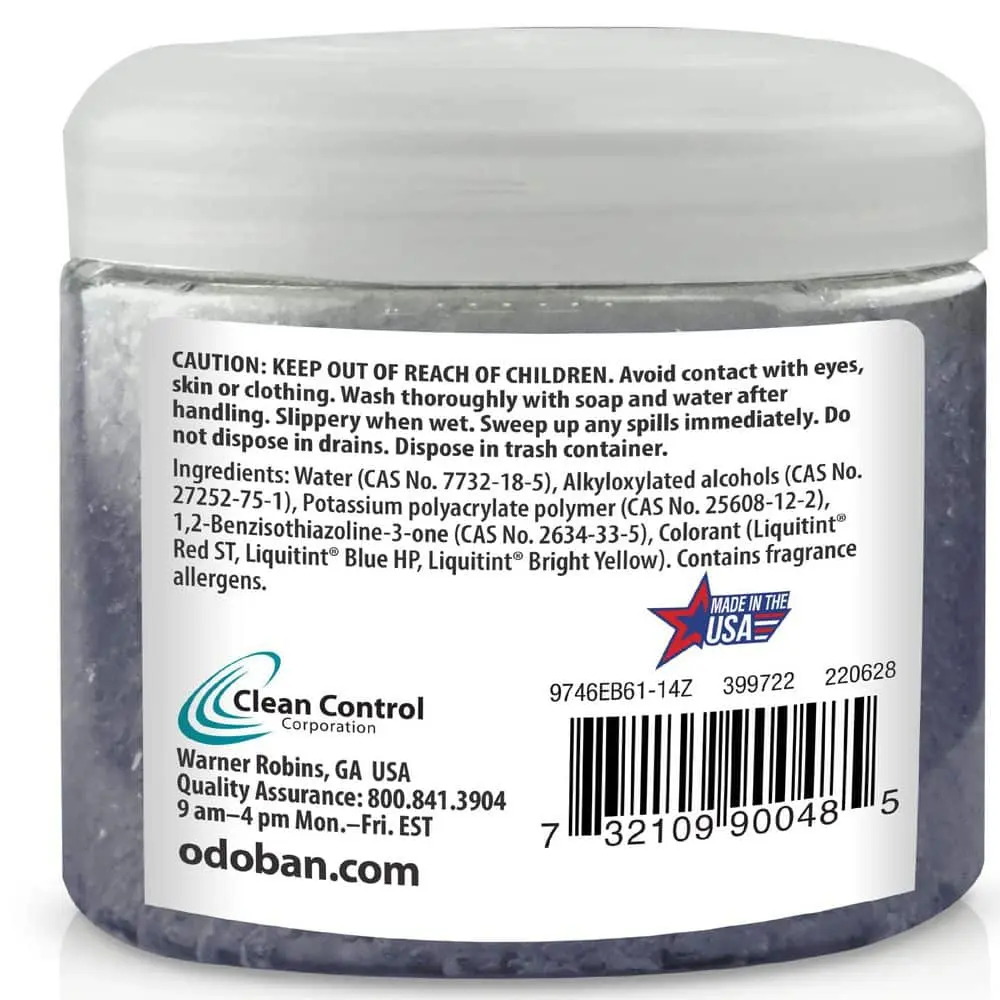 OdoBan Gel Crystals are designed to freshen and eliminate odors in areas prone to smells, like bathrooms, closets, lockers, and litter boxes. The gel continuously traps unwanted odors from the air. To use, twist off the lid, remove the protective seal, reapply the lid, and place it upright in the desired location. It absorbs odors in rooms up to 400 sq. ft. for up to 60 days. For optimal results, place the gel near airflows like air conditioning vents. Follow the directions on the label for best use.