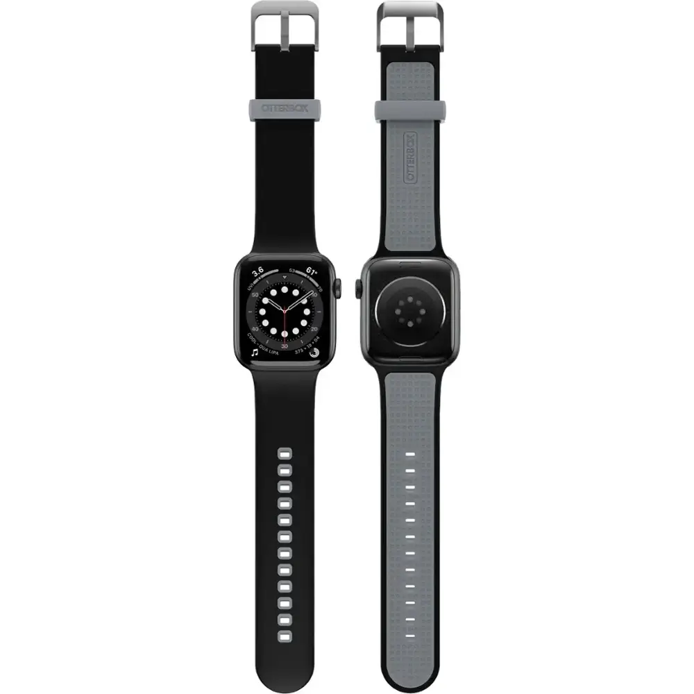 The OtterBox Apple Watch Band 44/45/46mm - Autobahn (Black) offers a durable soft-touch silicone construction for long-lasting comfort and wear resistance. Perfect for an active lifestyle, the band features a sweat-resistant and breathable design, making it ideal for workouts and daily use. The secure buckle and clasp provide a snug and adjustable fit, while the sleek and modern look ensures it complements your Apple Watch in style.