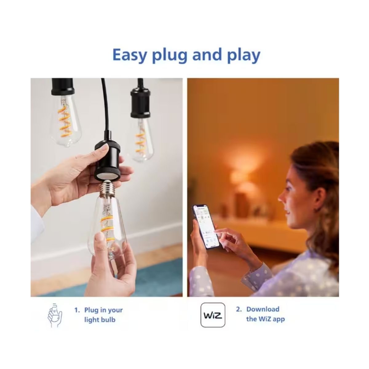 Experience the benefits of human-centric lighting by incorporating this intelligent WiZ LED ST19 tunable white filament bulb into your daily life. Adjust the color temperature from warm to cool white to enhance your focus or promote relaxation. Create customized schedules to automate the turning on and off of lights based on your daily or weekly activities. Easily manage the lighting using your smartphone or voice commands, and enjoy remote access to your lights from anywhere. WiZ lights seamlessly connect to your current Wi-Fi network, eliminating the need for extra hardware.