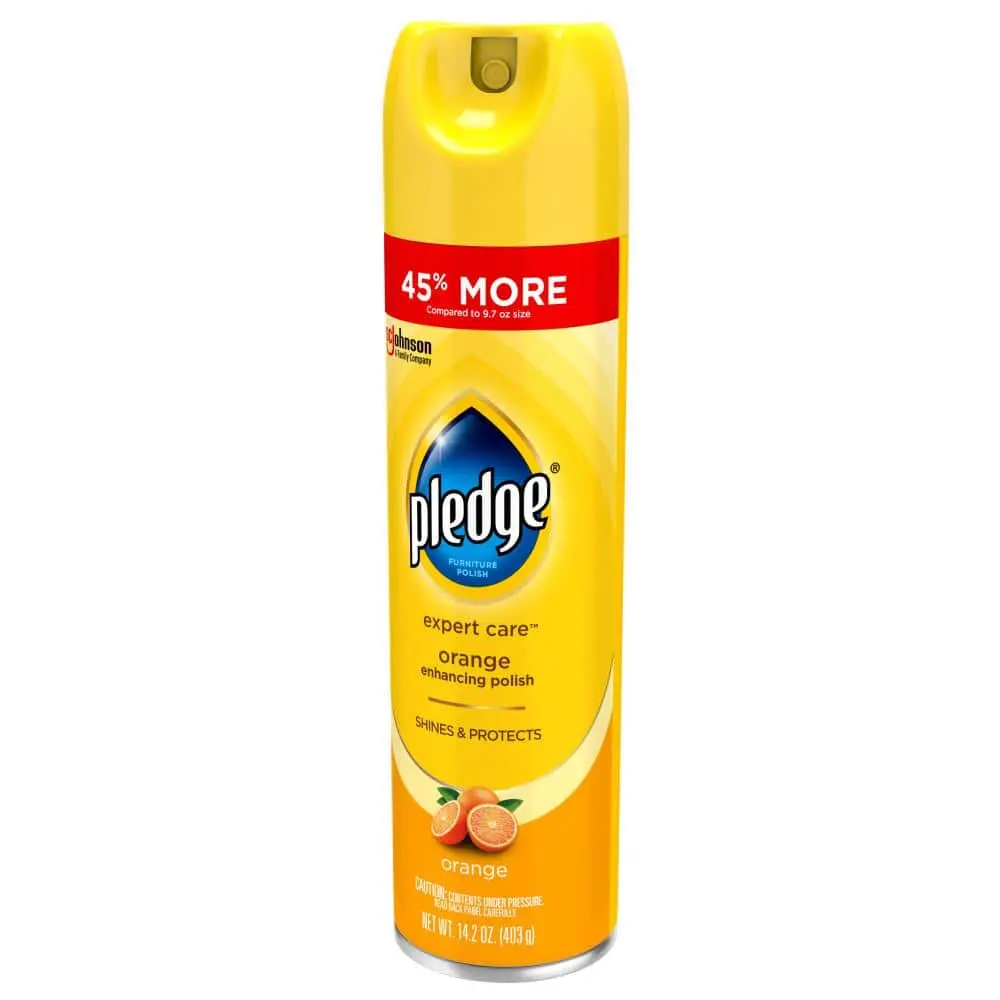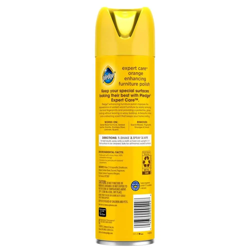 For decades, Pledge has been trusted to care for and protect surfaces, and that legacy continues with our Expert Care Enhancing Polish. This furniture polish not only shines but also protects wood and a variety of other surfaces. The refreshing orange scent adds to the experience while the formula effectively removes dust and fingerprints, leaving a glossy, protective coating without any waxy buildup. Perfect for polishing delicate, high-end surfaces, Pledge Enhancing Polish works on sealed wood, leather, granite, stainless steel, laminate, quartz, and other hard surfaces, helping your home shine and look its best.