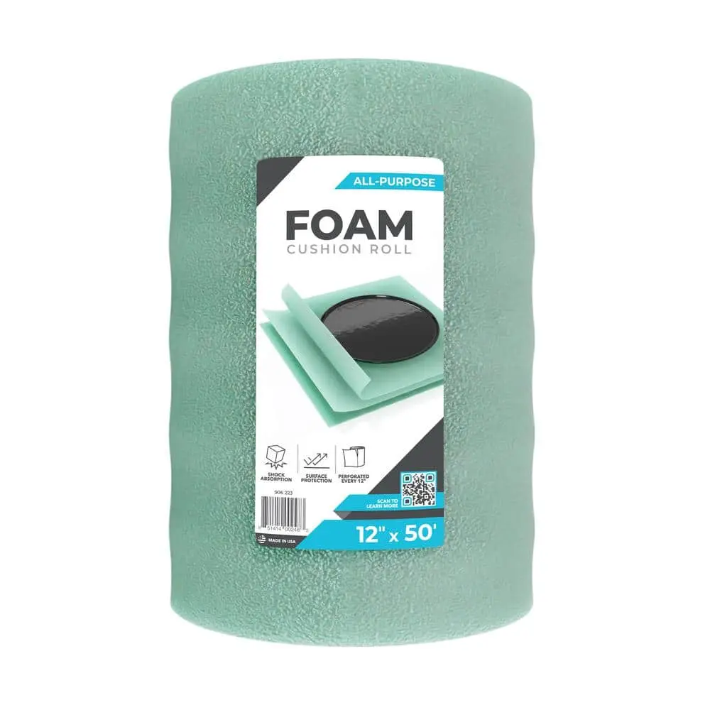 The 1/16 in. x 12 in. x 50 ft. Foam Cushion Roll offers lightweight yet effective protection for fragile items, preventing scratches, dents, and damage during moving, storage, or shipping. Its flexible design makes it easy to cut and customize, ensuring a secure fit for delicate items. With 50 feet of coverage, this foam roll is a versatile and reliable packing solution for any situation