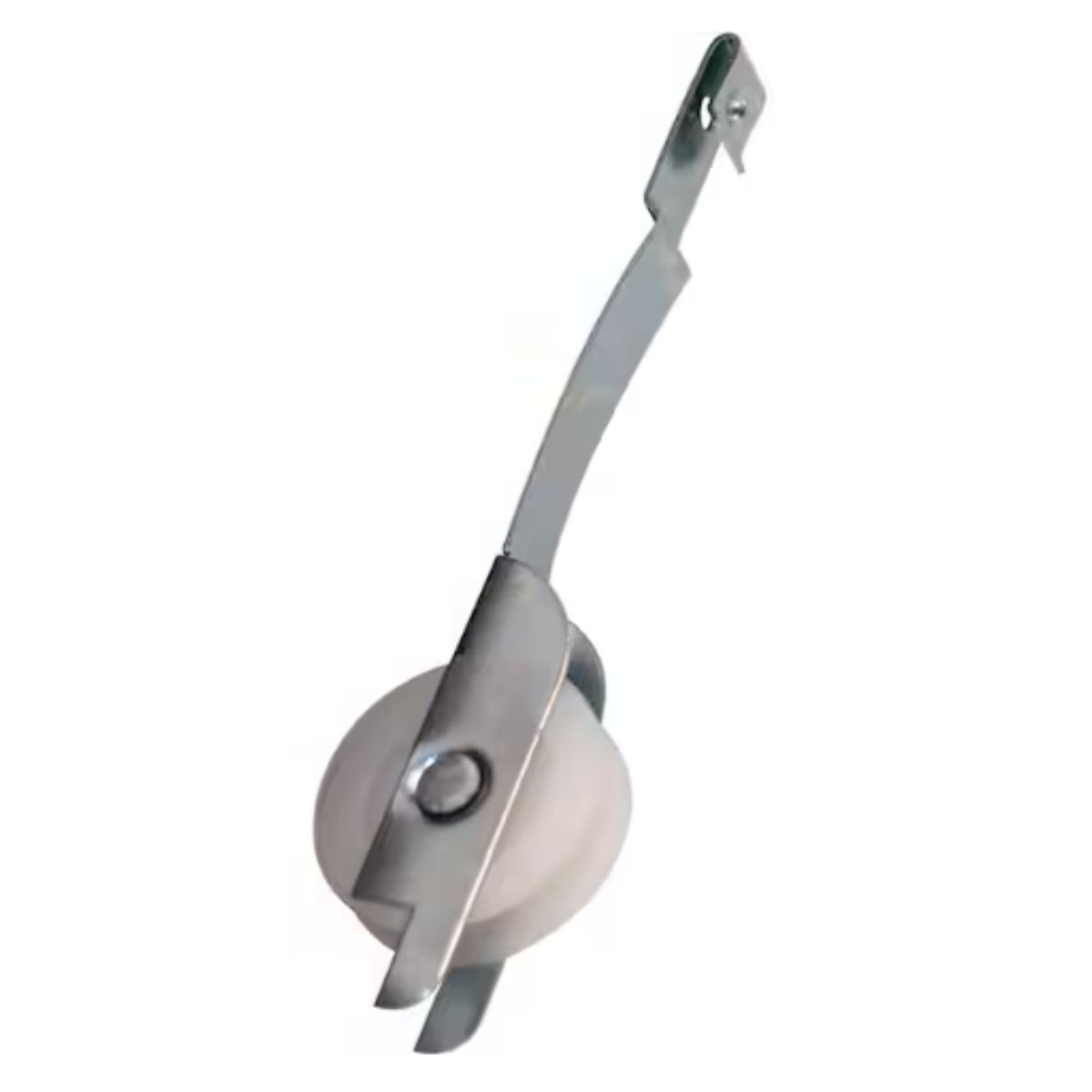 This roller assembly features a 1-inch diameter roller made of high density polyethylene. The roller is mounted in the housing and is designed to prevent it from retracting too far up into the door frame. The assembly also includes a flat steel spring end that catches onto the inside of the door frame, as well as two tabs that restrict the roller's movement. This sliding screen door roller assembly insert has a thinner frame compared to the Prime-Line part B 646. It is equipped with an adjustable inner housing and a high density polyethylene roller.