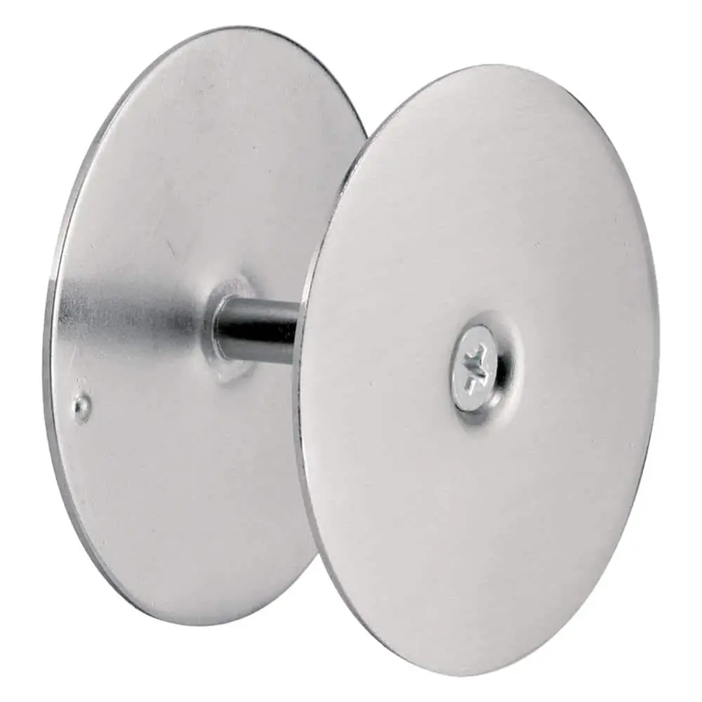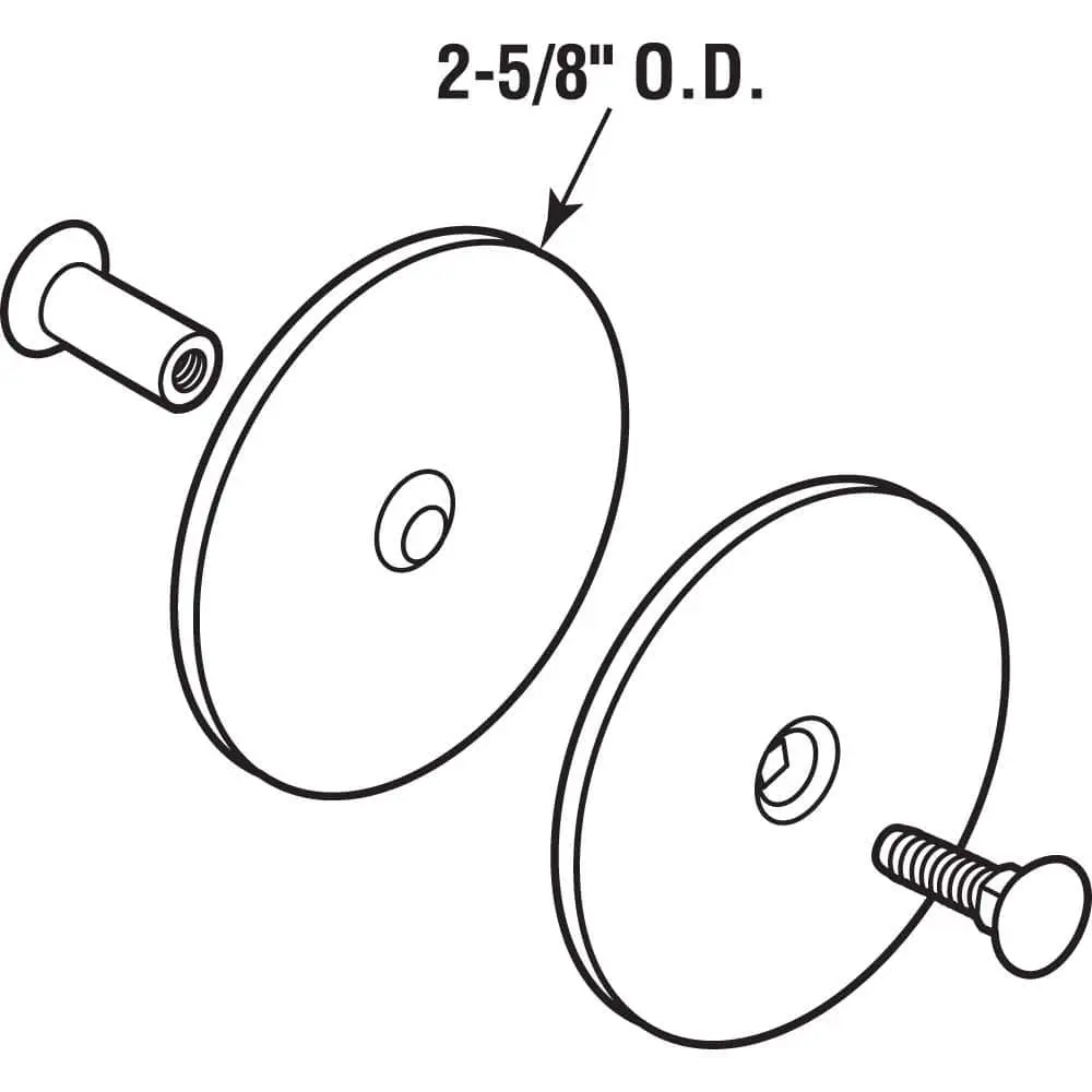 The Prime-Line U 10446 Door Knob Hole Cover is designed to maintain security and privacy on entry doors where the knob latch or deadbolt hardware is no longer in use. This cover plate has a 2-5/8 inch outside diameter and fits doors up to 1-3/4 inch thick. It can cover holes from 1/2 inch to 2-1/8 inch in diameter, offering a simple and effective solution to conceal unwanted gaps. Easy to install with just two fasteners, this durable plate ensures that your door looks great while providing extra security.