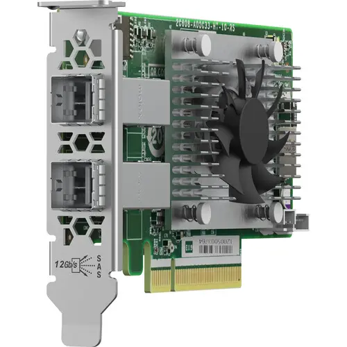 Powered by a Broadcom SAS3408 controller, it offers tri-mode support for SAS III, SATA III, and PCIe protocols with transfer speeds up to 8 GT/s. The card comes preinstalled with a low-profile bracket but also includes standard desktop and full-height bracket options for flexible system integration.