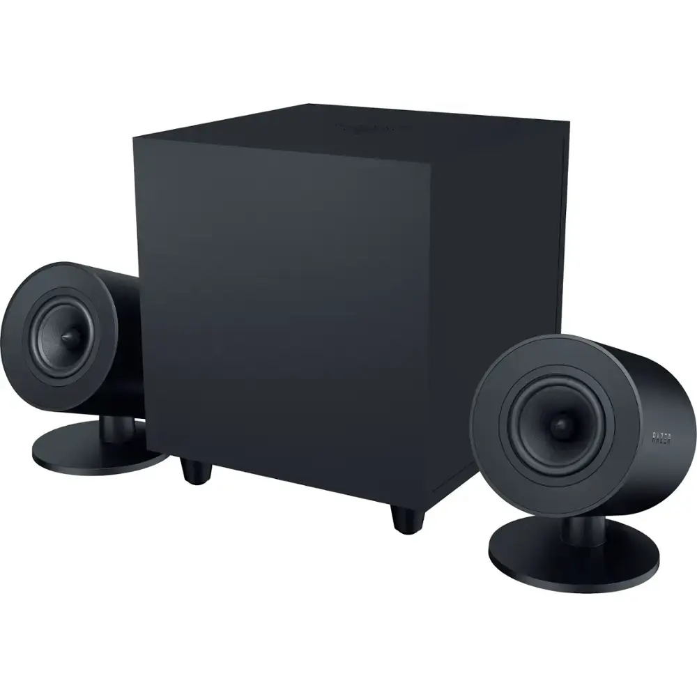 Elevate your gaming experience with the Razer Nommo V2, a full-range speaker system with a subwoofer engineered for high-fidelity, immersive sound and powerful bass. Featuring THX Spatial Audio and Razer Chroma RGB, get ready for an all-encompassing experience that engages both sight and sound.