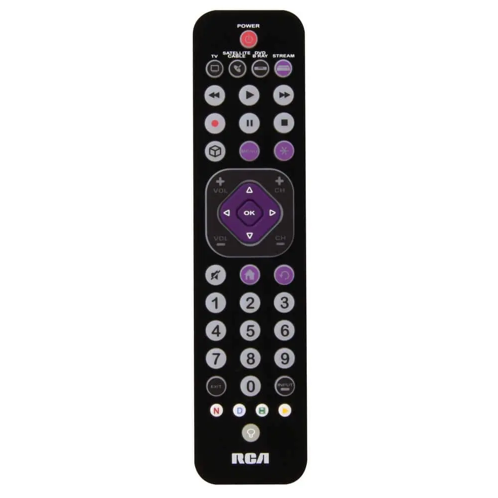 The RCA Ultra-Thin Universal Remote Control enhances your entertainment setup, offering a streamlined experience for controlling up to 4 devices. It features a simple and user-friendly setup with automatic, brand, manual, and direct code search methods. Replace multiple remotes with this reliable option, designed to easily manage your TV, audio, cable, satellite, and streaming services like Netflix, Disney+, Hulu, and YouTube.