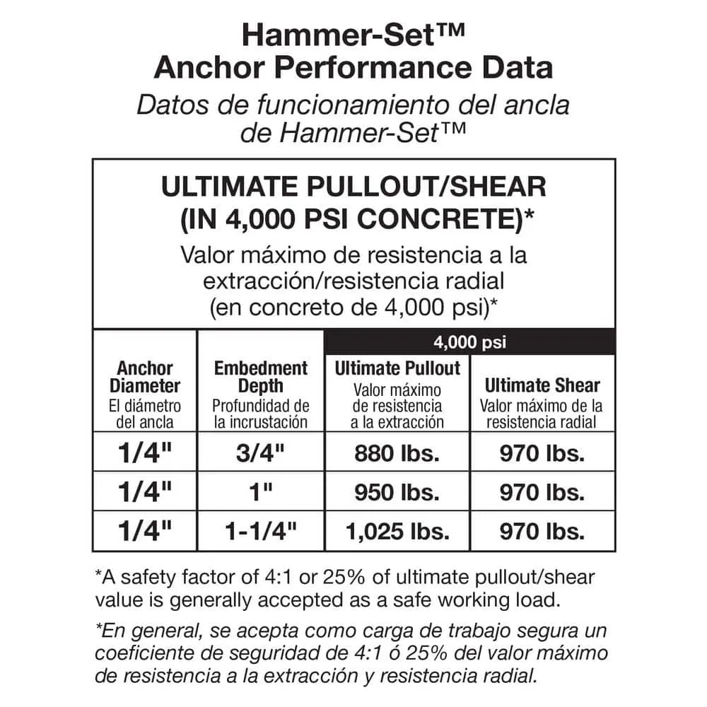 The Hammer-Set anchor is a mechanical drive anchor made of a zinc die-cast expansion body and a zinc-plated steel expander drive pin. These medium-duty anchors are perfect for various fastening tasks in concrete, block, and brick. Hammer-Set anchors are ideal for securing drywall tracks, electrical boxes, clips, flashing, lumber, and more.