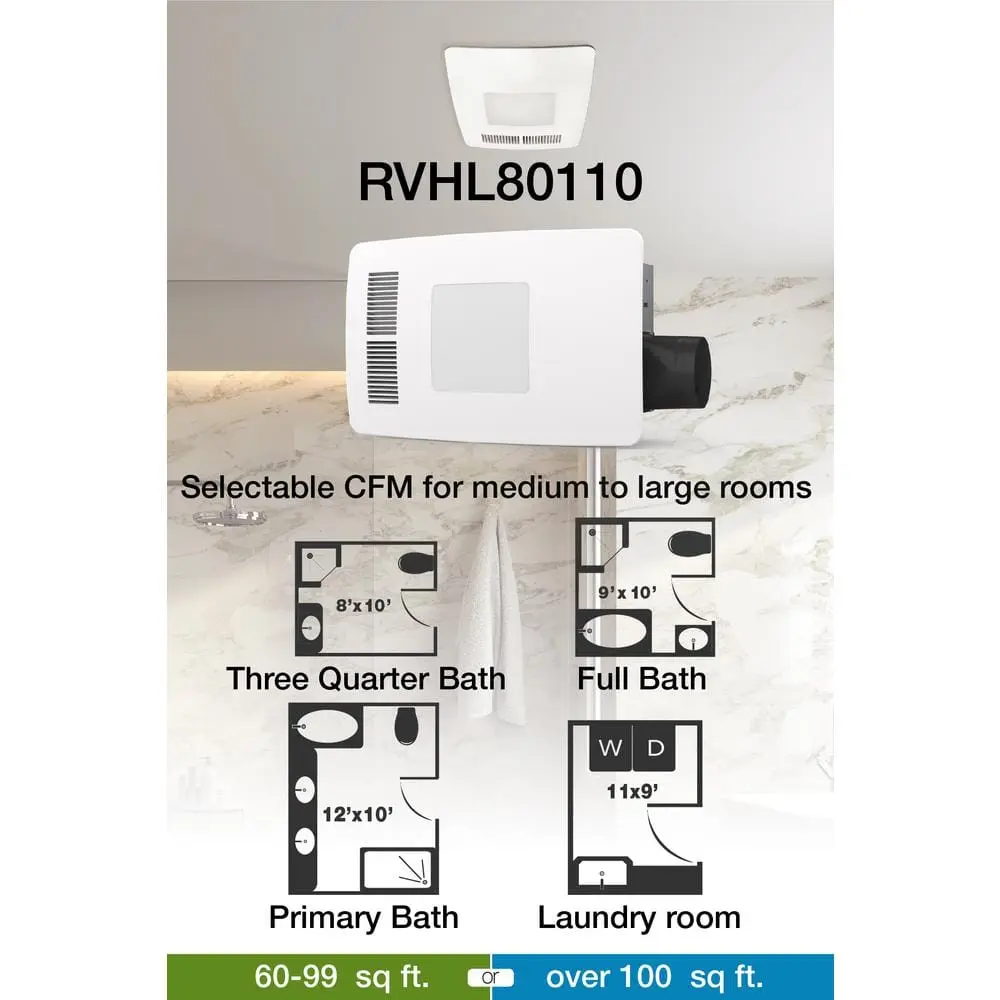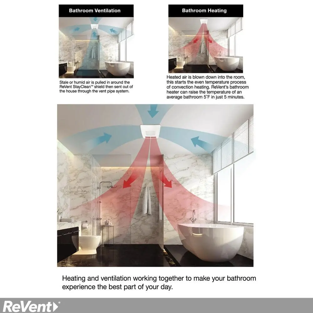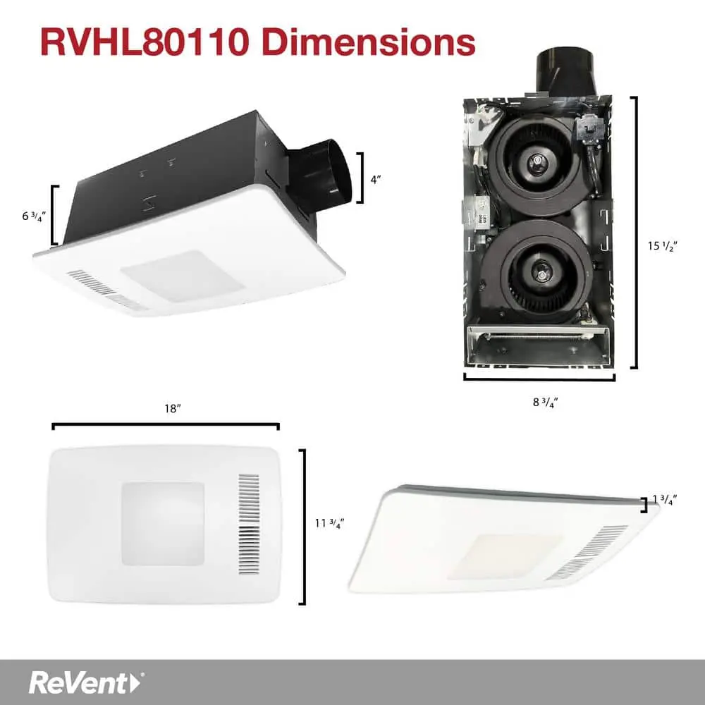 ReVent is the ultimate bathroom exhaust fan, designed for both professionals and DIY enthusiasts! With its award-winning Sheetlock installation method, you can install it quickly from the room sideno attic access needed. The RVHL80110 model features selectable airflow options of 80 to 110 CFM, making it perfect for any bathroom size. Enjoy a bright 1000 lumens LED light with five adjustable color temperatures, ranging from Warm White to Daylight, to perfectly match your space. Plus, its convection heating warms your room by 5 degrees in just 5 minutes! Operating at a whisper-quiet 0.8 sones at 80 CFM and 1.4 sones at 110 CFM, ReVent stands out as one of the quietest fans on the market. Upgrade your bathroom with ReVent for powerful performance and tranquility!