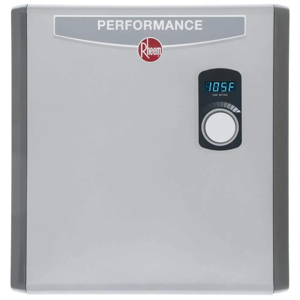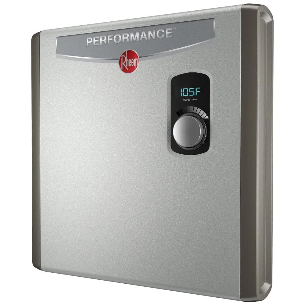 Save energy and reduce costs with the Rheem Performance Electric Tankless Water Heater. Its compact design allows for easy installation under cabinets or sinks without the need for venting. This unit requires a 3 x 40 amp double-pole breaker and provides instant, continuous hot water when needed. Professional installation is required.
