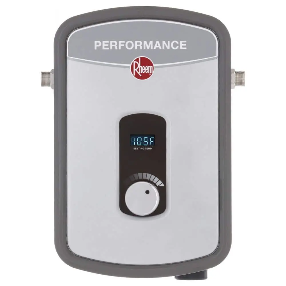 The Rheem Performance electric tankless water heater provides an efficient, on-demand hot water supply with self-modulating technology that adjusts energy use based on your needs. With its electronic thermostatic temperature control, you can easily set and read the water temperature in one-degree increments. Its compact, point-of-use design makes it an ideal solution for smaller spaces, such as under cabinets and sinks.