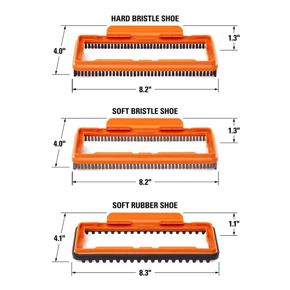- Includes: 1 Hard Bristle Shoe, 1 Soft Bristle Shoe, and 1 Soft Rubber Shoe (Utility Nozzle MAX2509 sold separately).