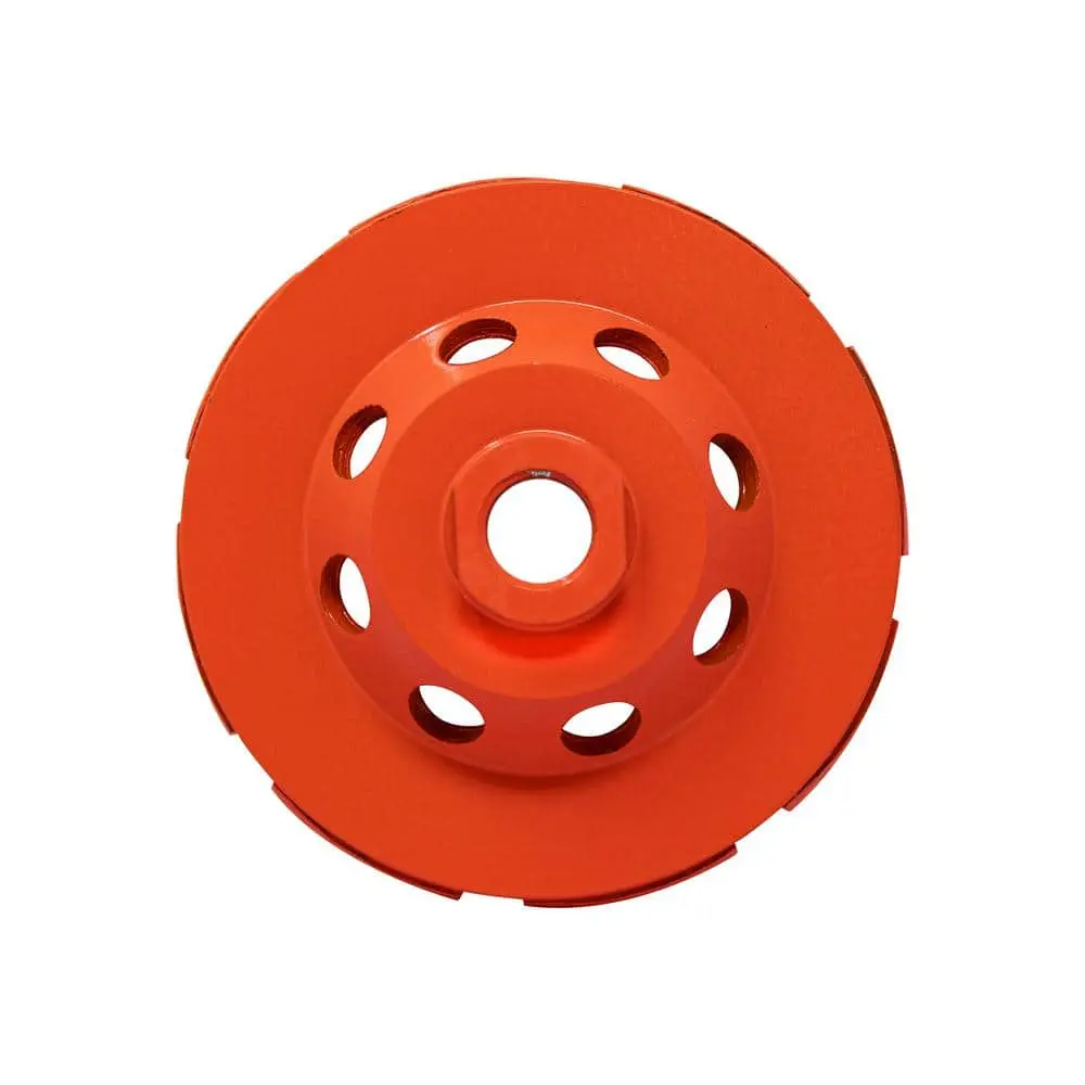The RIDGID 4 in. Diamond Double Row Cup Wheel is designed for precise grinding of concrete and stone surfaces. Featuring a diamond coating, it offers exceptional durability and effective material removal. The double row design ensures faster material removal and a smoother finish, making it ideal for heavy-duty applications. Its heavy-duty construction is built for long-lasting performance, while its compatibility with angle grinders makes it a versatile tool for a wide range of grinding and polishing tasks