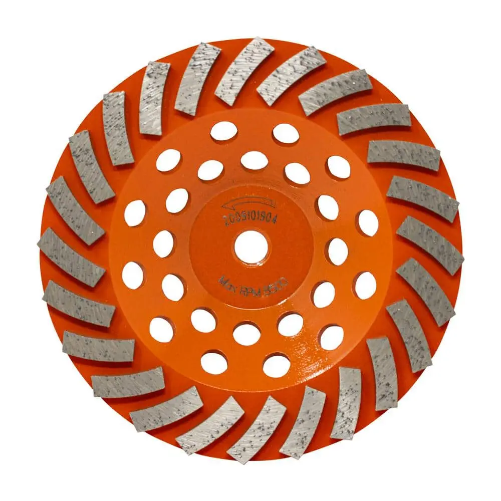 The RIDGID 7 in. 24-Segment Turbo Cup Grinding Wheel is designed for aggressive grinding and polishing of concrete and masonry surfaces. The 24-segment design ensures faster material removal and provides a smoother finish, making your projects more efficient. With a 7 in. diameter, it offers a large surface area for quicker results. Its durable construction is built to withstand heavy-duty use, and as a power tool accessory, it’s compatible with most angle grinders, offering great versatility for a wide range of grinding tasks