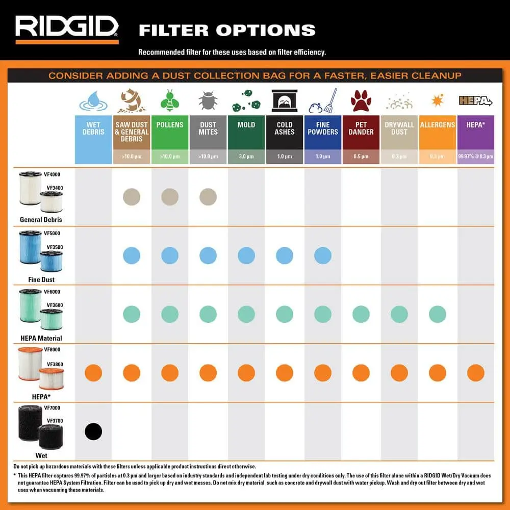 The RIDGID (size B) wet/dry vacuum dust bags are perfect for keeping your cleanup process neat and easy. This 2-pack ensures you’re prepared for large cleanups, with quick disposal at your fingertips. Compatible with most 5 to 10 gallon RIDGID wet/dry vacuums (excluding the 6-gallon NXT model), these bags efficiently collect fine debris like drywall dust, preventing a messy drum. Simply remove and discard the bag for an easy cleanup—no need to lift the drum. These high-efficiency dust bags help extend filter life by reducing clogs, enhancing vacuum performance. Pair with a RIDGID filter (sold separately) to further optimize cleaning. Available in various pack sizes (6-count, 12-count, 24-count, and 36-count) to fit your project needs. Installing and removing the bags is a breeze—just align the collar with the inlet and press it against the vacuum drum.