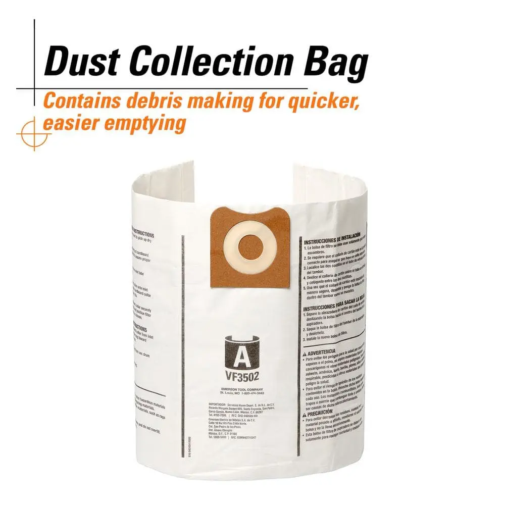 The RIDGID (Size A) wet/dry vacuum dust bags (2-pack) help contain messes during cleanups, offering easy disposal for large projects. Designed for 12-16 gallon RIDGID wet/dry vacs, these bags efficiently collect dry debris like drywall dust and keep the vacuum drum clean. Simply remove and discard the bag for quick cleanup—no need to lift the drum.