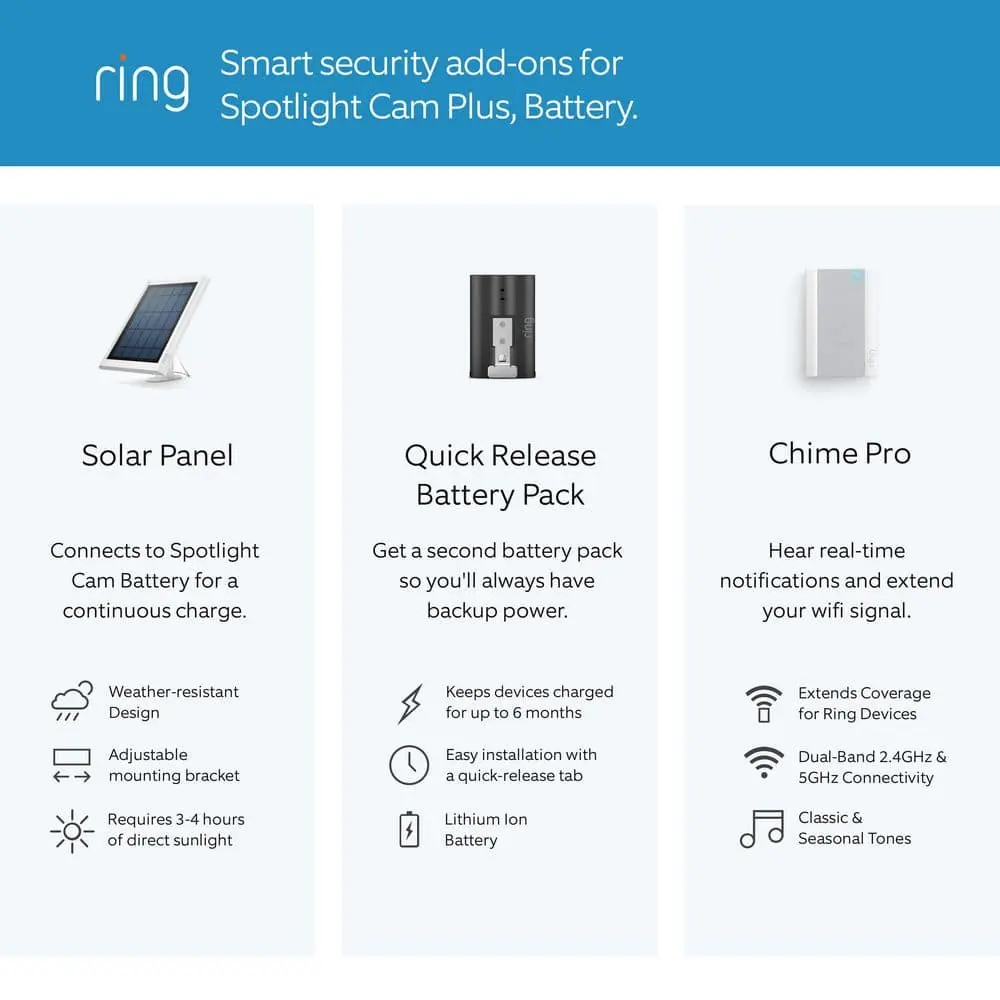 Eliminate blind spots with Spotlight Cam Plus, your ideal solution for securing out-of-sight areas. Featuring Color Night Vision, customizable Motion Detection, and two motion-activated bright lights, this camera ensures your space is always monitored. Simply mount the wireless camera, adjust the angle, and you're all set. The rechargeable battery is easy to swap out without disrupting your setup.