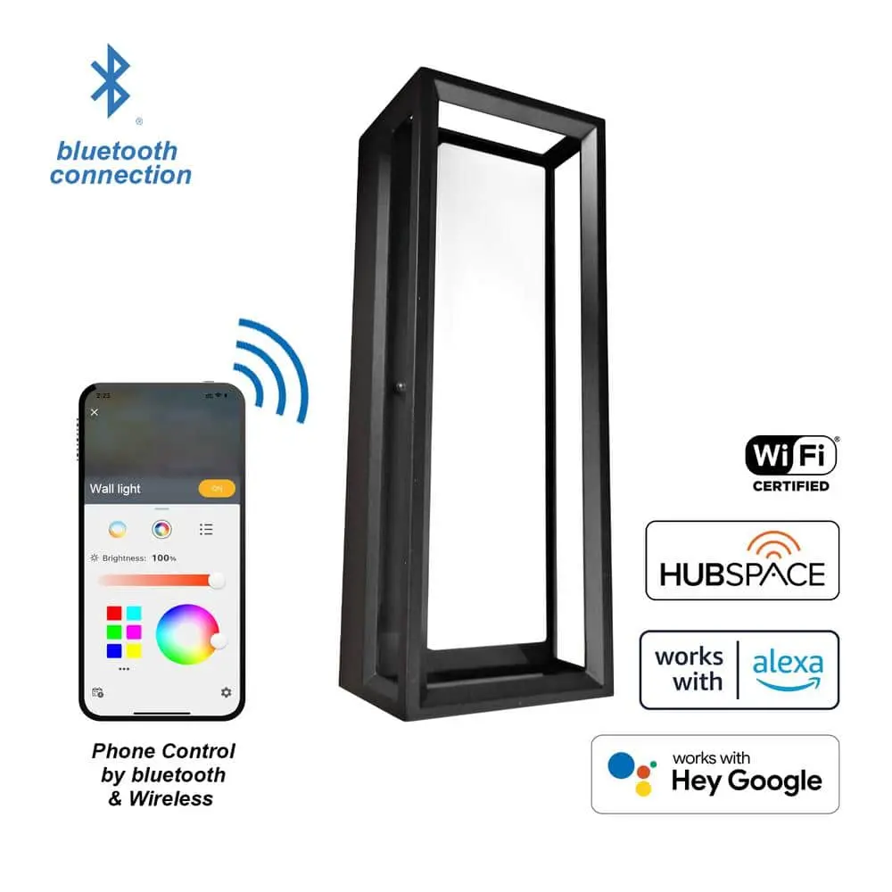 This stylish Outdoor 1-LED Light Wall Sconce offers RGB color-changing features, controlled via the Smart Hubspace app. With adjustable light output from 3000K to 6000K, it’s perfect for enhancing your front door or outdoor living space.