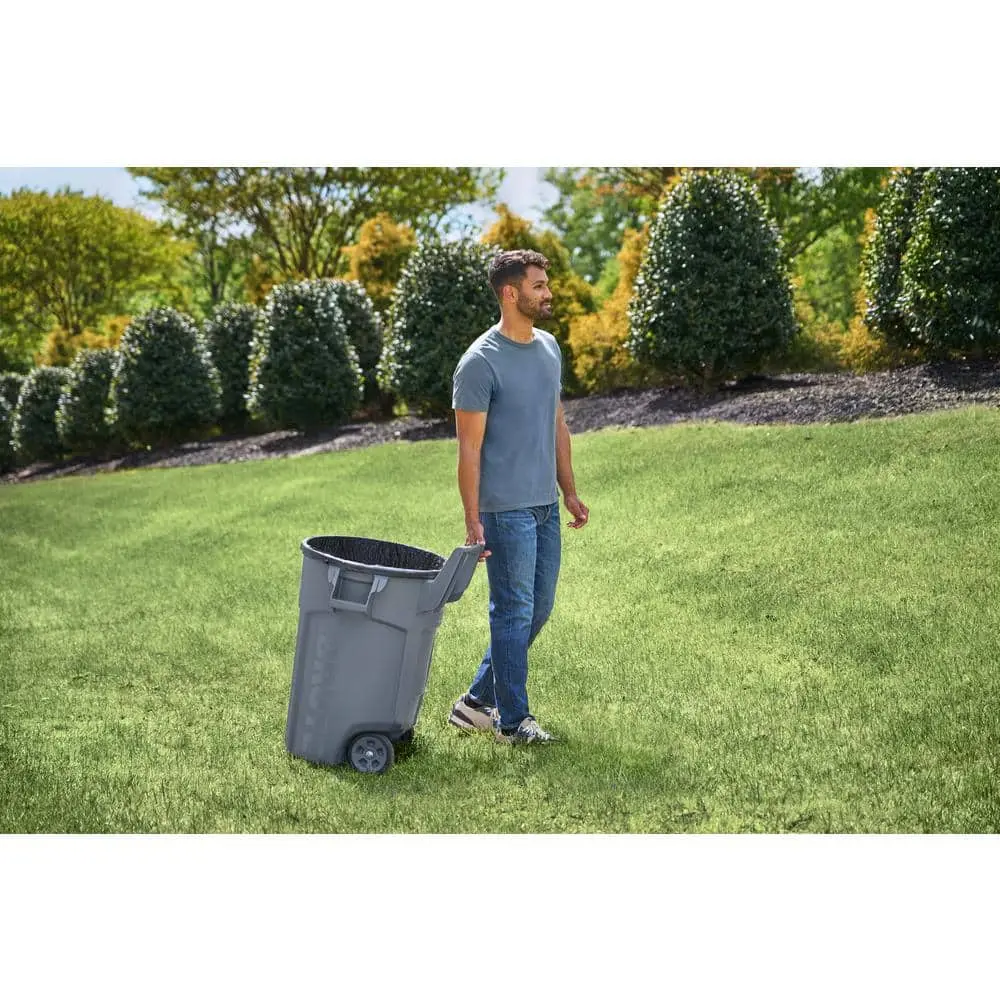 The Rubbermaid Commercial Wheeled BRUTE container makes moving heavy loads 5X easier, even over rough terrains, enhancing productivity and minimizing the risk of injury. Built with top-quality materials and a UV inhibitor, it offers long-lasting durability in even the harshest commercial environments. Tested for strength, the Wheeled BRUTE is designed with the same toughness as the classic BRUTE for exceptional performance. Its ergonomic handle reduces the effort needed to move heavy loads of up to 180 lbs.