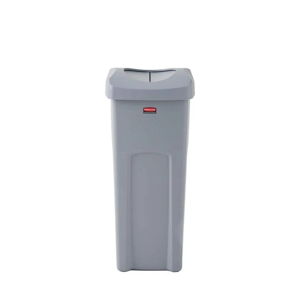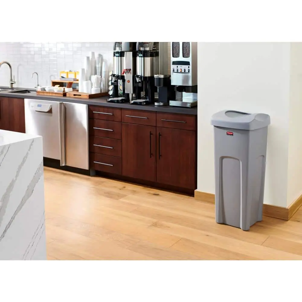 The Rubbermaid Commercial Untouchable Square Container is ideal for holding large, irregular items and features venting channels to make waste removal easier. Its durable plastic construction is crack-resistant, even in challenging indoor and outdoor environments. It has a 23-gallon capacity and comes with a swing lid.