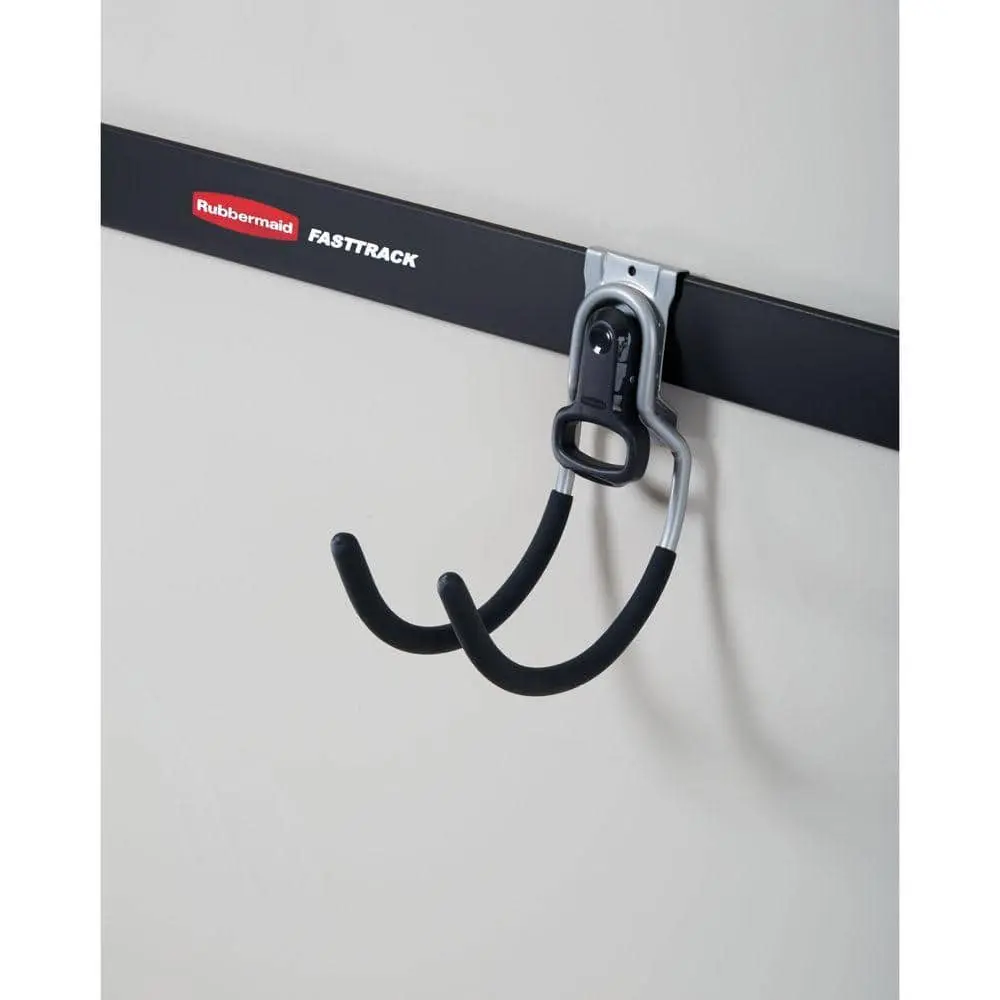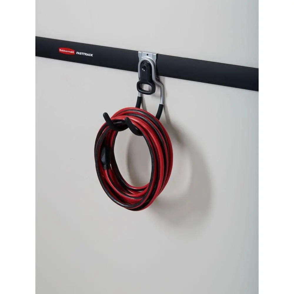 The Rubbermaid FastTrack Garage Utility Hook is a durable and reliable storage solution designed to keep your garage organized. Made from heavy-duty steel, it can securely hold up to 50 lbs. of tools, cords, and equipment. Its soft-grip coating prevents scratches and protects stored items. This hook offers versatile mounting options, easily snapping onto the FastTrack rail system or mounting directly to the wall. With its space-saving design, it helps maximize storage efficiency, keeping your workspace neat and clutter-free.