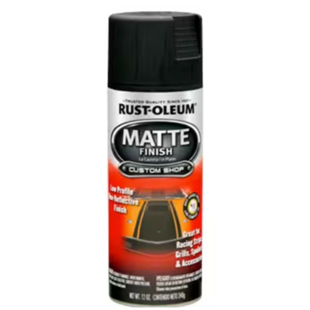 Rust-Oleum Automotive Matte Finish offers a low-profile, nonreflective surface that dries quickly and provides excellent coverage. It features Rust-Oleum's Stops Rust formula for enhanced durability. Ideal for autos, trailers, RVs, grills, spoilers, and other automotive accessories, this oil-based formula resists nicks and scratches, delivering a matte finish that dries to the touch in just 20 minutes. Each 12 oz. can covers up to 12 sq. ft. and includes Any-Angle Spray Technology with a comfort tip for versatile application. It provides long-lasting rust prevention and is easy to clean up with mineral spirits.