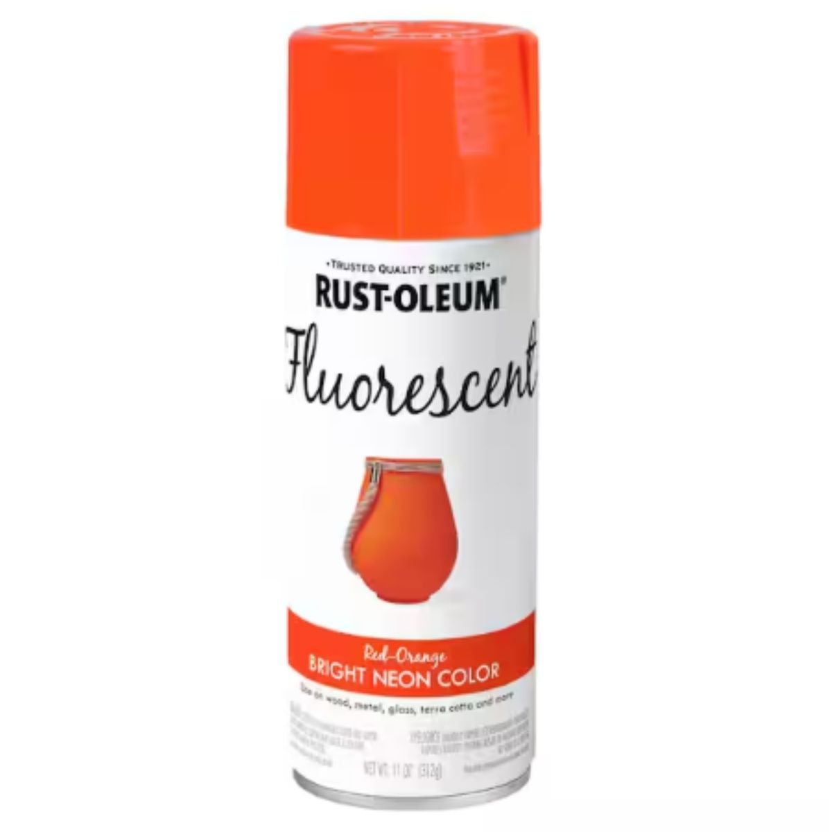 The Rust-Oleum Specialty 11 oz. Fluorescent Spray Paint is formulated to enhance visibility when stenciled or sprayed directly onto objects. It is particularly suited for crafts, toys, and sporting goods, drying to the touch in just 15 minutes for quick applications. Each 11 oz. can provides coverage for up to 15 sq. ft., suitable for both indoor and outdoor use. The fluorescent formula delivers rich, vibrant colors that maximize visibility. For best results in achieving a neon effect, it is recommended to apply an undercoat of flat white paint before using the fluorescent spray. Please note that actual paint colors may vary from on-screen and printer representations.