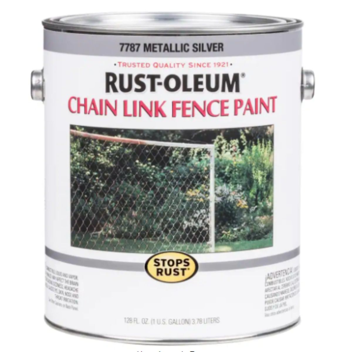 The Rust-Oleum Stops Rust 128 oz. Gloss Chain Link Fence Rust Preventive Paint is formulated to adhere well to galvanized metal, making it an excellent choice for your project needs. This paint dries to the touch in about 120 minutes and features a formula designed to protect against rust, ensuring a long-lasting finish that is chip-resistant. Ideal for easy application with a long-nap lamb's wool roller (not included), this 128 oz. can covers up to 400 sq. ft. in regular applications. It's available in a metallic silver shade, though actual paint colors may differ slightly from online representations. The online price includes a PaintCare fee in select states (CA, CO, CT, DC, ME, MN, OR).