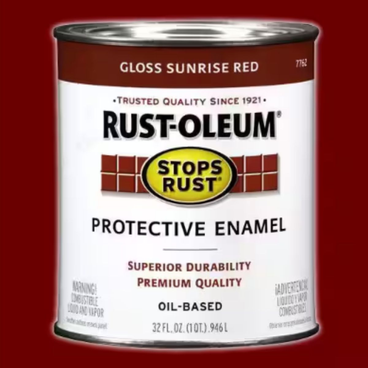The Rust-Oleum Stops Rust 32 oz. Sunrise Red Gloss Protective Enamel Paint is formulated for use on a variety of surfaces including wood, metal, concrete, and masonry. This paint is designed to protect against corrosion and rust, making it suitable for both indoor and outdoor applications. Key features include its ability to cover up to 100 sq. ft., depending on surface porosity, and an oil-based formula that effectively conceals flaws and imperfections often found in scratched, rusted, or pitted metals. It dries to a rich gloss sheen within approximately 4 hours, providing durable and corrosion-resistant protection. Cleanup is easy with mineral spirits. Additionally, the online price includes a PaintCare fee in specific states, emphasizing environmental responsibility. This product is ideal for users seeking robust rust prevention, ease of application, and lasting beauty for their projects.