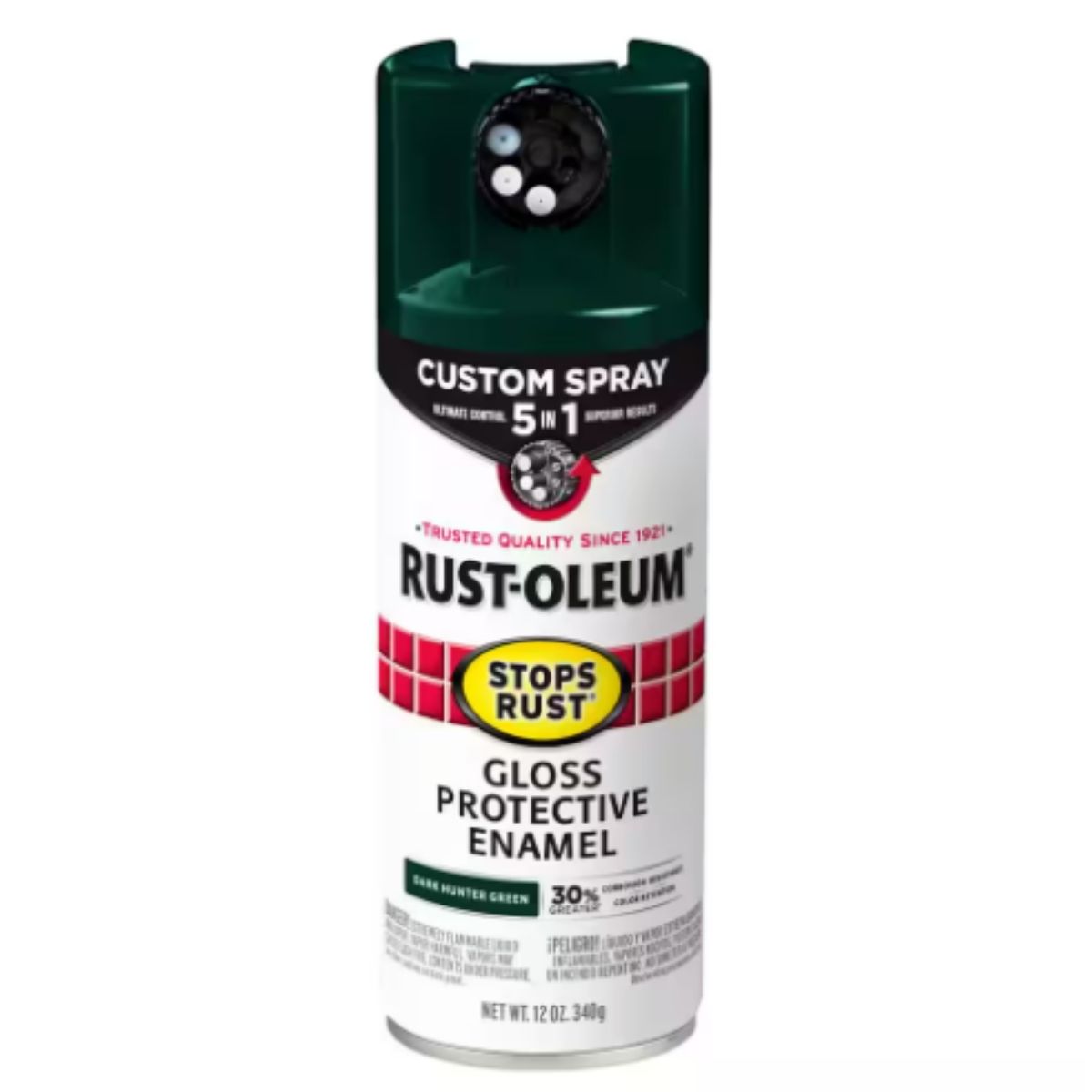 The Rust-Oleum Custom Spray 5-in-1 offers five custom spray paint nozzles for ultimate control and confidence in your projects. Turn the dial to select one of five positions: high output for large curved surfaces, standard for a traditional experience, low output for detailed work and corners without drips and runs, and vertical or horizontal fans for flat surfaces. When finished, lock the dial and store the remaining spray paint for future use. The Stops Rust Advanced Spray Paint provides 30% greater corrosion resistance and enhanced color retention compared to original Stops Rust colors with the standard spray paint tip. This durable, protective coating ensures superior rust prevention, a long-lasting finish, and excellent resistance to abrasion, fading, chipping, and dulling. Ideal for fast-drying applications on indoor and outdoor metal and wood projects such as mailboxes and patio furniture, it guarantees a tough, attractive finish with lasting color.