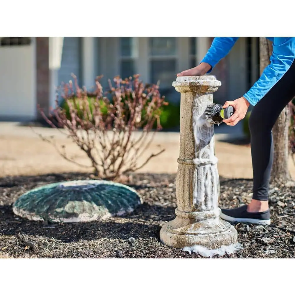 The RYOBI 11-Piece Scrubber Accessory Kit is a versatile cleaning solution with various brush shapes and sizes for cleaning flat and curved surfaces. It features a secure Hex Shank Connection, making it compatible with most drill/drivers and specific RYOBI scrubbers. The kit includes soft, medium, and hard bristle brushes, scour pads, sponges, and a hook and loop backer for quick changes. Ideal for cleaning a wide range of surfaces like glass, tile, fiberglass, brick, and more.