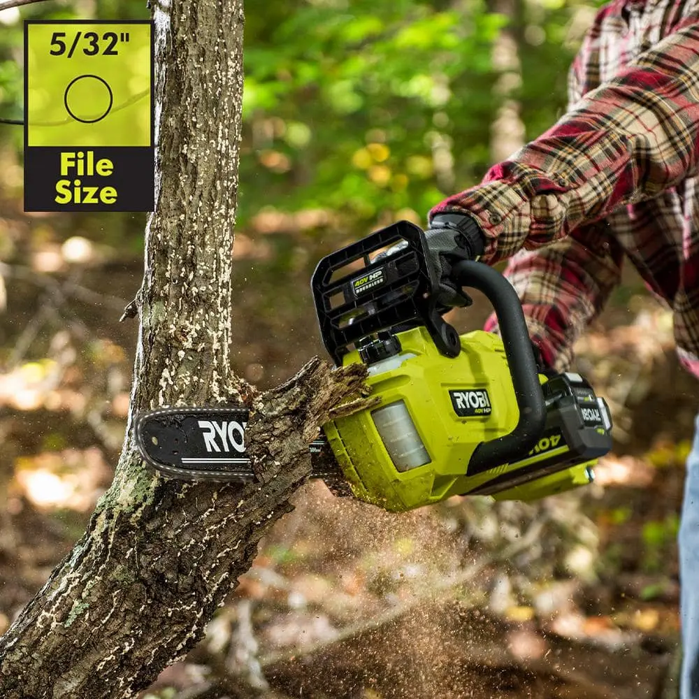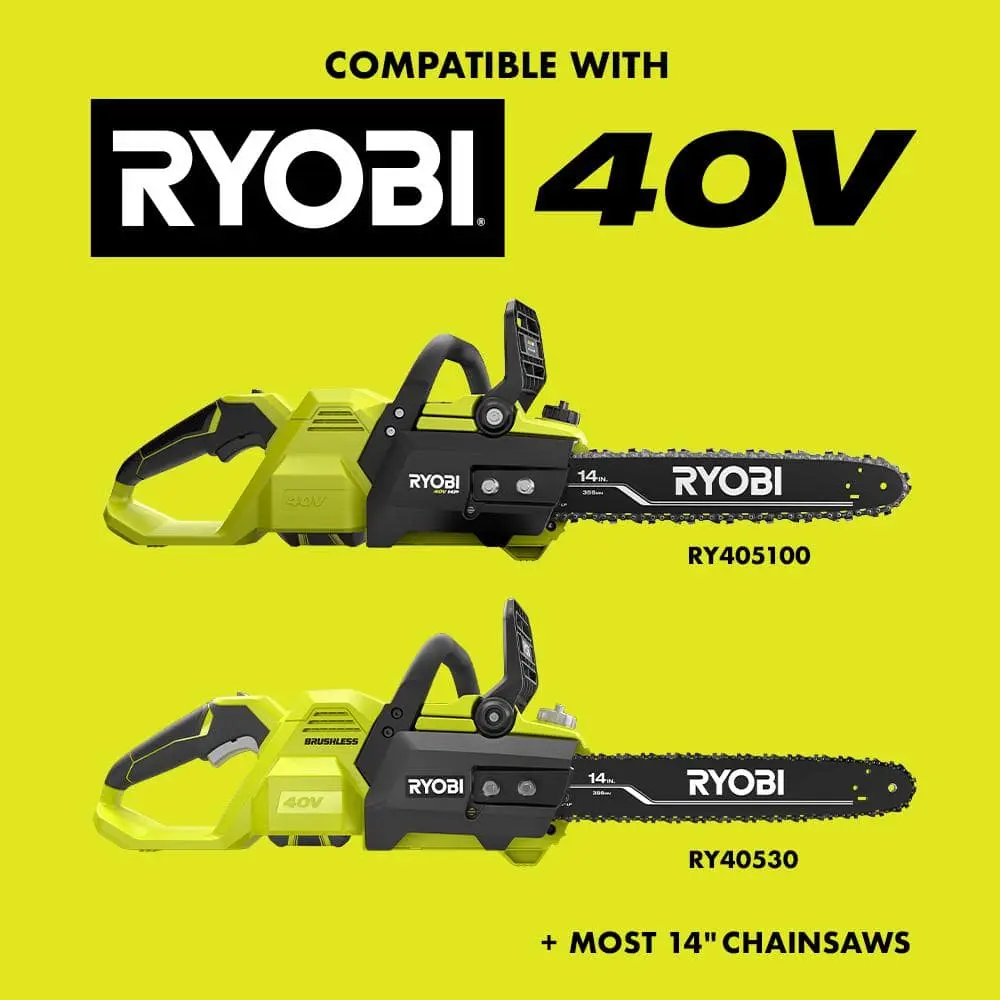 The RYOBI 14" Replacement Chain is an ideal choice for replacing your dull or damaged 14" chains. Designed for use with both gas and cordless saws, it is compatible with most major brands. This chain features a .050" gauge, 3/8" low-profile pitch, 52 drive links, and a 5/32" file size for precise cutting performance.