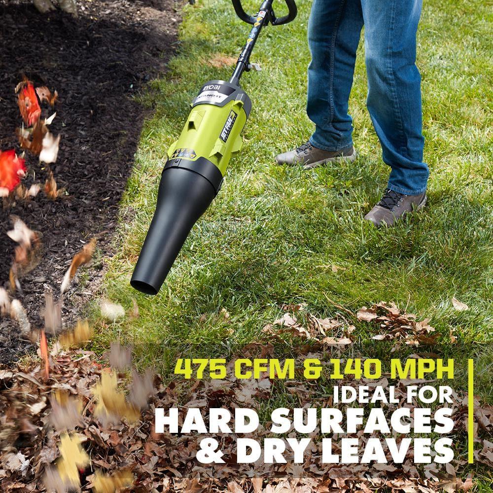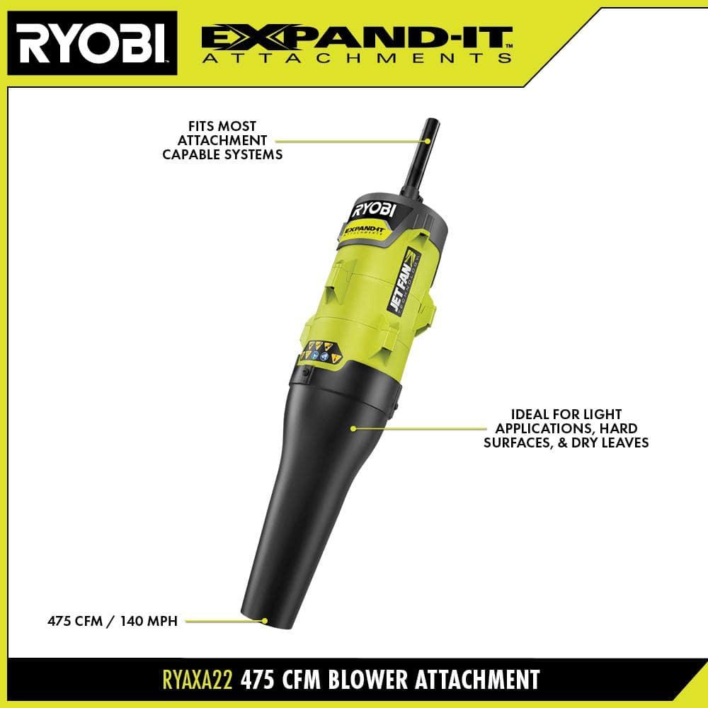 RYOBI EXPAND-IT 475 CFM Blower Attachment is a versatile addition to the RYOBI EXPAND-IT Attachment System, allowing you to easily convert your attachment-capable string trimmer into a powerful blower. With a performance output of 475 CFM and air speeds of 140 MPH, this attachment is perfect for clearing light debris, hard surfaces, and dry leaves. Compatible with most gas and cordless attachment-capable systems, it offers a cost-effective and space-saving solution for your yard maintenance needs.