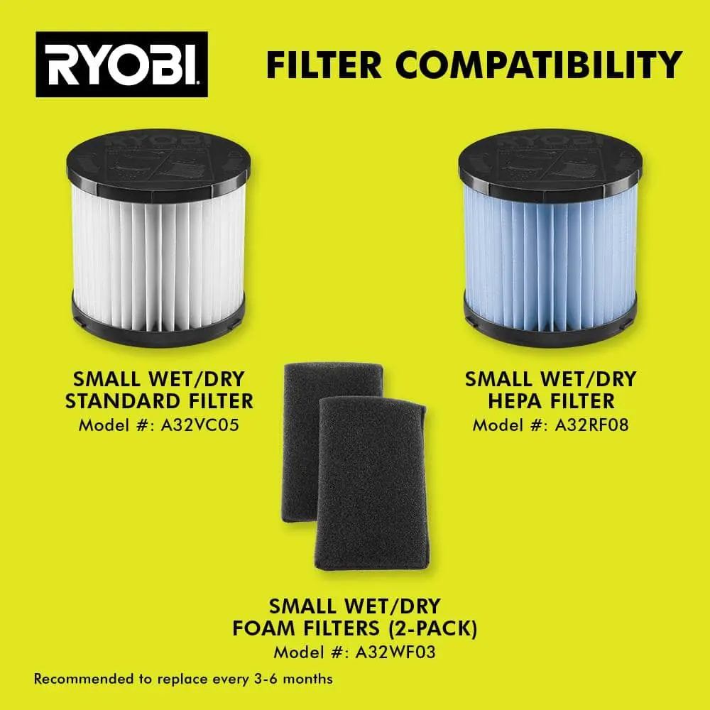 Compatible filters and accessories are available online, including the Standard Filter (A32VC05), HEPA Filter (A32RF08), and Foam Filters (A32WF03). Additional accessories, such as the 6’ x 1-1/4” Hose (A32VH03) and 1-1/4” 2PC Wet/Dry Accessory Kit (A323G01), can also be purchased separately.