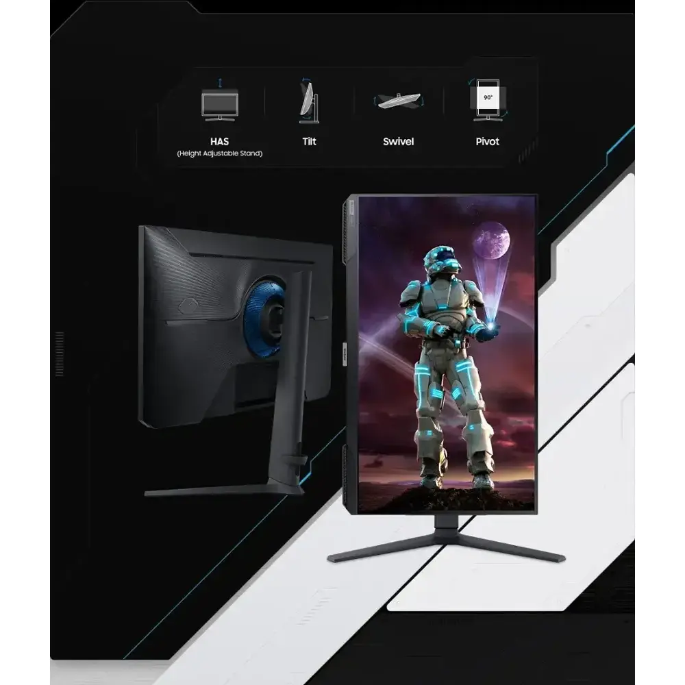 Gain the ultimate gaming advantage with the Samsung 27" Odyssey G4. Designed for serious gamers, this monitor features a blazing-fast 240Hz refresh rate, 1ms (GTG) response time, and full NVIDIA G-Sync & AMD FreeSync Premium support, ensuring smooth, stutter-free gameplay. With an IPS panel for stunning color accuracy and a 178º wide viewing angle, every frame comes to life in crisp detail.