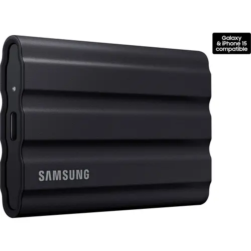 The Samsung 4TB T7 Shield Portable SSD is built for outdoor use, featuring a rugged, rubber-protected exterior with an IP65 rating for water and dust resistance. Designed for content creators, it offers both durability and high performance. Its shock-resistant elastomer shields against drops while remaining lightweight and portable. With blazing-fast speeds of up to 1,050 MB/s read and 1,000 MB/s write, the USB 3.2 Gen 2 Type-C port ensures seamless compatibility for a smooth workflow.