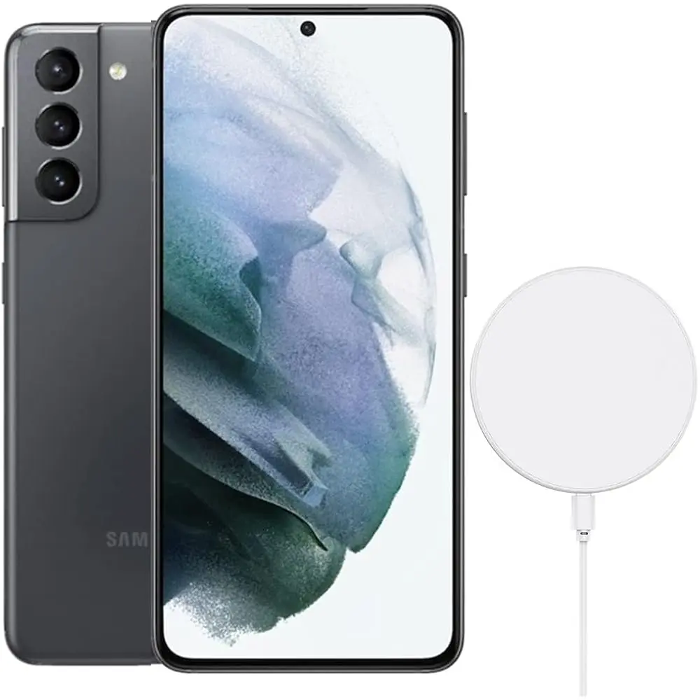 The Samsung Galaxy S21 5G (128GB, 8GB RAM) offers top-tier performance with 5G connectivity, a 6.2-inch Dynamic AMOLED 2X display, and Snapdragon 888. It features a 64MP + 12MP + 12MP rear camera setup and a 10MP front camera for stunning photos. With 128GB storage, a 4000mAh battery, and 15W Fast Wireless Charging, this unlocked smartphone is compatible with major carriers like T-Mobile, AT&T, and Verizon. It runs on Android 11 with One UI 3.1 and comes with a 25W Charging Cube and Wireless Charger.