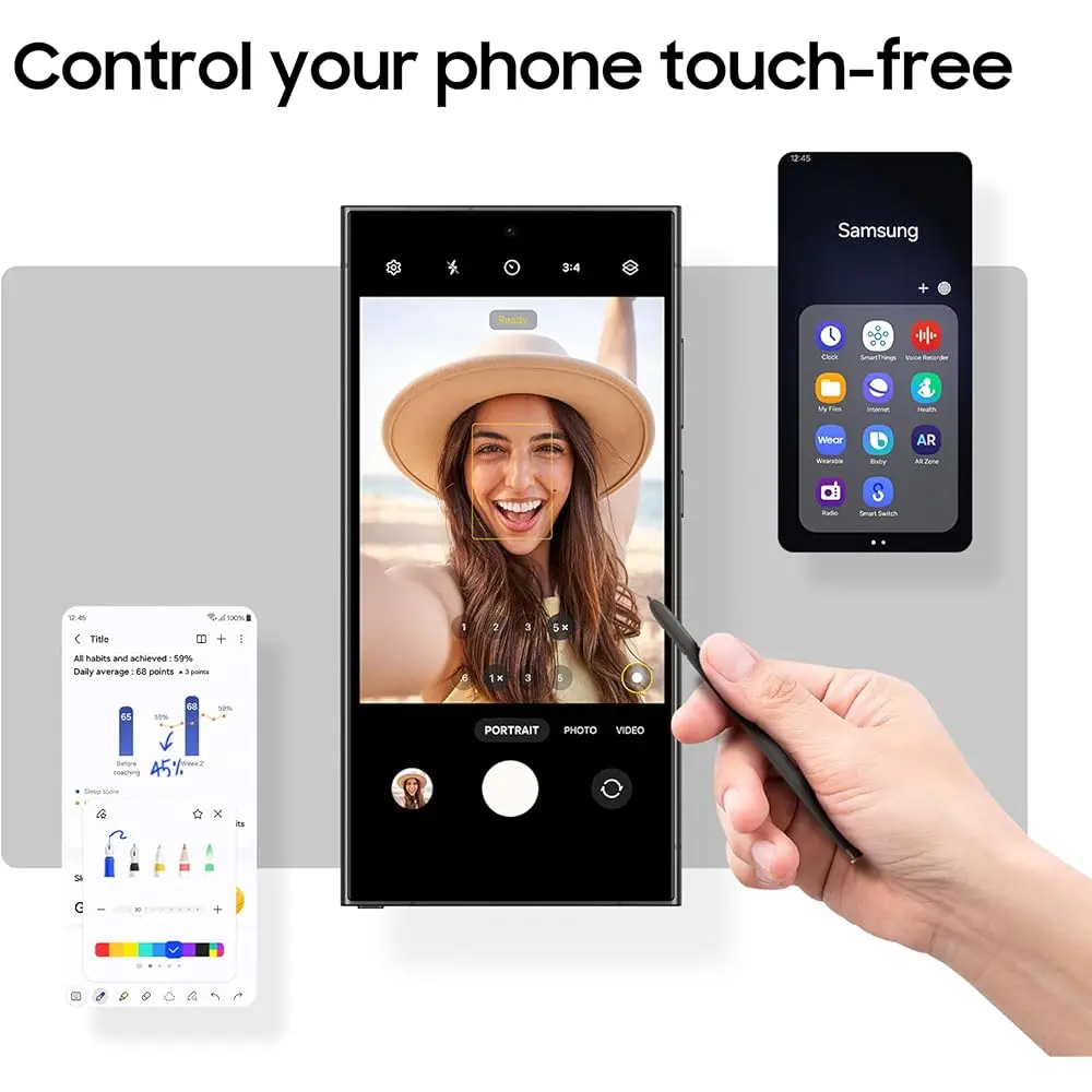 Elevate your Samsung Galaxy S24 Ultra experience with the Samsung S Pen, designed for precision and ease. Featuring a 0.7mm fine tip, this S Pen allows you to effortlessly jot down notes and sketch with high accuracy, transforming your device into a versatile creative tool. Air Actions enable touch-free control, letting you navigate your phone, control music, and browse photos with a flick of the pen. The Air Command feature gives you quick access to your most-used apps and settings through a convenient collapsible menu, allowing for seamless customization.
